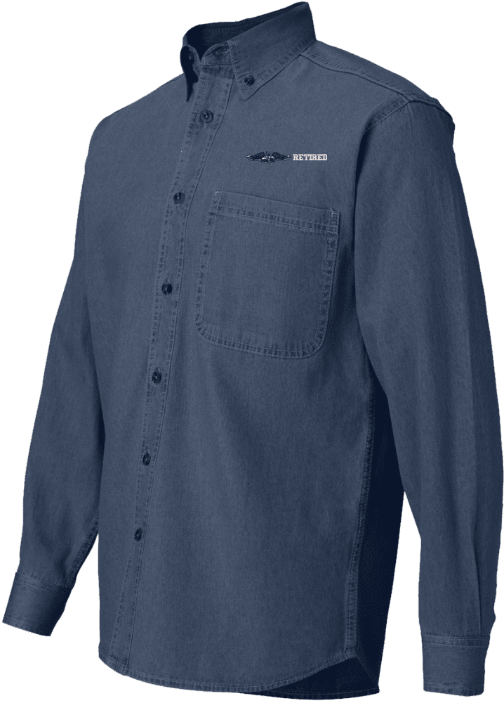 Note: Some of the Color Options pictured may not be available. Available Color Options are listed on the drop down menu above.MilitaryBest is proud to offer this quality U.S. Navy Enlisted Silver Dolphins Retired Denim Shirt. This long sleeve button down denim shirt is made using a 100% cotton denim material. These quality Military Denim Shirts are proudly embroidered at our facilities in Scottsboro, AL. Support the Navy MWR program by purchasing only from Licensed Vendors.