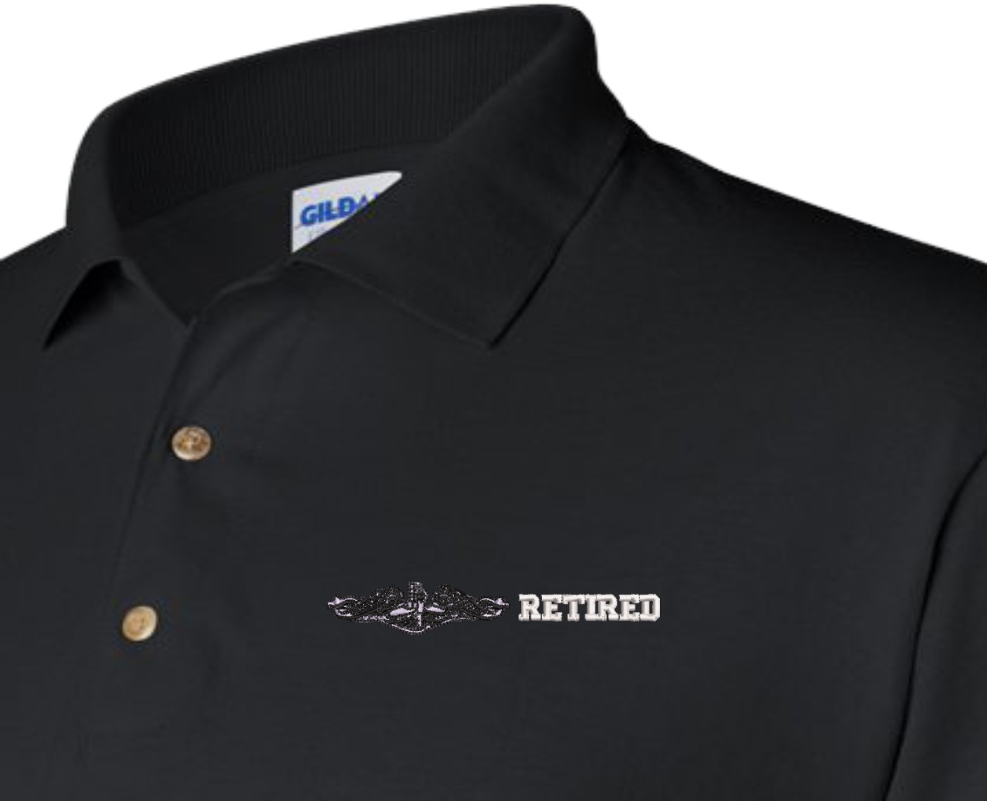 Note: Some of the Color Options pictured may not be available. Available Color Options are listed on the drop down menu above.MilitaryBest is proud to offer this quality U.S. Navy Enlisted Silver Dolphins Retired Polo. Each Polo is available in either 100% Ringspun cotton pique or a 50/50 cotton/polyester blend. These quality Military Polos are proudly embroidered at our facilities in Scottsboro, AL. Support the Army MWR program by purchasing only from Licensed Vendors.