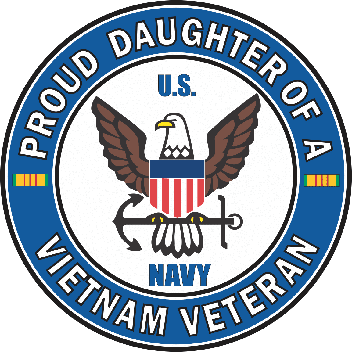 MilitaryBest is proud to honor our U.S. Army, U.S. Marine Corps and U.S. Navy Families with our exclusive Proud Vietnam Veteran Decals and Stickers. Each Proud Daughter of a U.S. Navy Vietnam Veteran Window Decal is Made in The USA at our facitlies in Scottsboro, Alabama. All of our decals are die cut with a contoured edge and each is printed with UV resistant inks and is also laminated for extra long life. For bulk pricing for custom and wholesale decals click here: Custom & Wholesale Decals!*While many of our customers use our decals on a variety of surfaces. Their intended purpose is for windshield applications