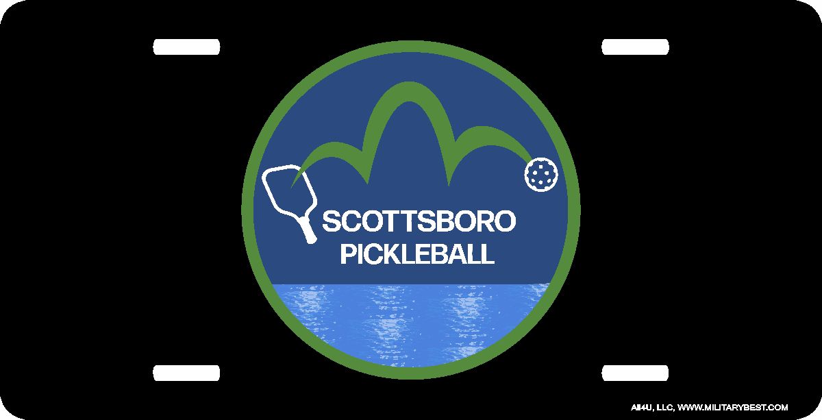 The images used on our license plates are sized to be as visible as possible. The image may be obstructed if the plate is used in combination with a license plate frame. To order your plate with a smaller image please notify us in the comments section at checkout. Enjoy your license plate!This Scottsboro Pickleball License Plate is made from heavy gauge aluminum and has a baked enamel finish to last for many years of use. Each plate measures 5 15/16" x 11 15/16". This license plate would make a wonderful addition to your collection or a great gift.