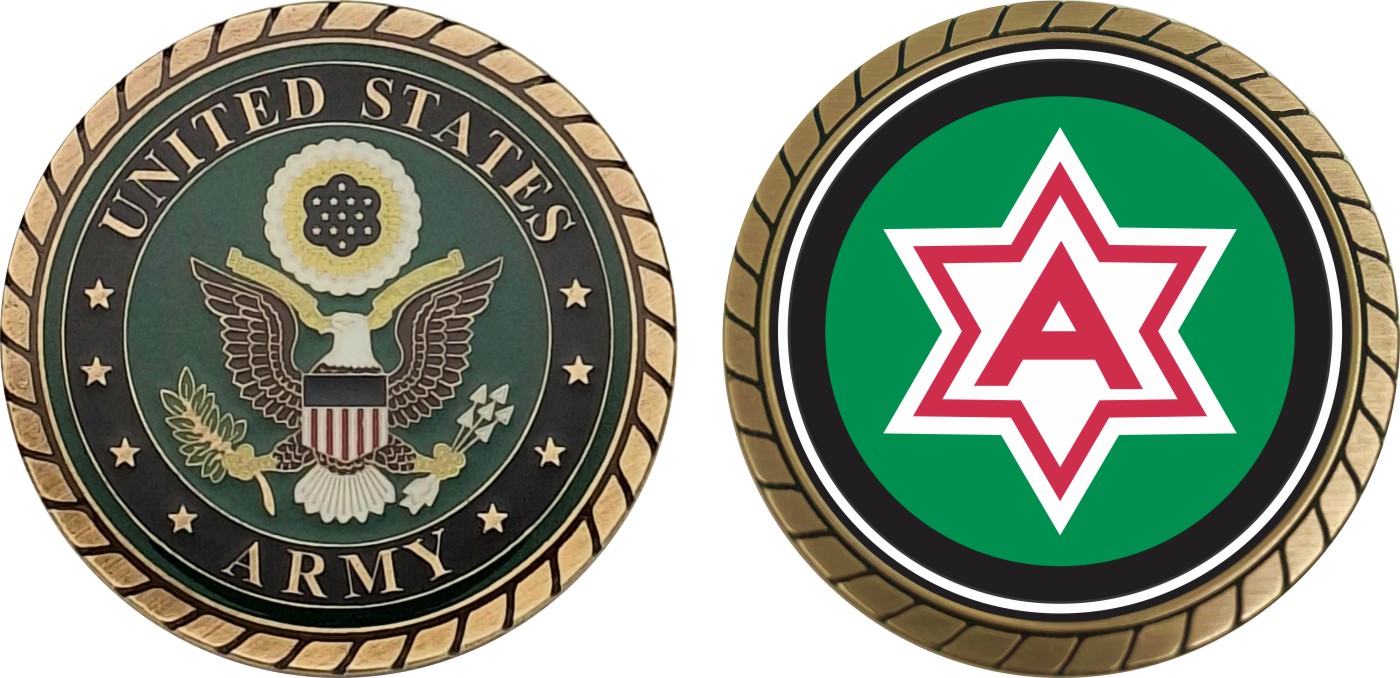 This 1 3/4” Sixth U.S. Army Patch Challenge Coin is proudly offered by Militarybest. This Officially Licensed Army coin has beautiful enamel finish on one side and an organized crisp clean design on the opposite side.