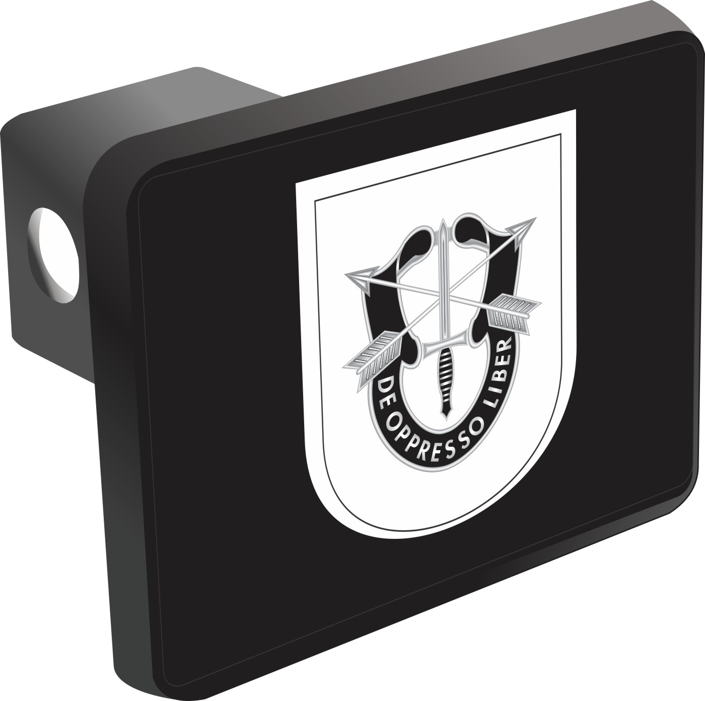 This Special Forces Training Group Flash Hitch Cover is proudly Made in the USA. Each Hitch Cover's face plate measures 4.7" x 3.4" and is applied on a black heavy duty injection molded plastic 2" hitch cover; link pin not included. The face plate of the hitch cover is sublimation printed to provide a beautiful glossy finish sure to catch the eye. This hitch cover would make a wonderful addition to your truck or other vehicle.A percentage of the sale of each MilitaryBest item is forwarded to the licensing departments of each respective branch of service in support of the MWR (Morale, Welfare, & Recreation) program. These payments are made by either ALL4U LLC or the wholesaler from where the item originated. Our team thanks you for your service and your support of these programs.