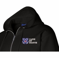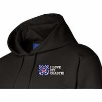 MilitaryBest has expanded its line of apparel with this custom embroidered I Love My Coastie U.S. Coast Guard Sweatshirt. Each sweatshirt is direct embroidered onto either a Champion or Jerzees brand sweatshirt using a 9.5 oz 50/50 Cotton Poly blend material. This I Love My Coastie U.S. Coast Guard Sweatshirt will make an excellent addition to your wardrobe, or a great gift. Your satisfaction is Guaranteed! This I Love My Coastie U.S. Coast Guard Sweatshirt is custom embroidered at our facilities in Scottsboro, AL.