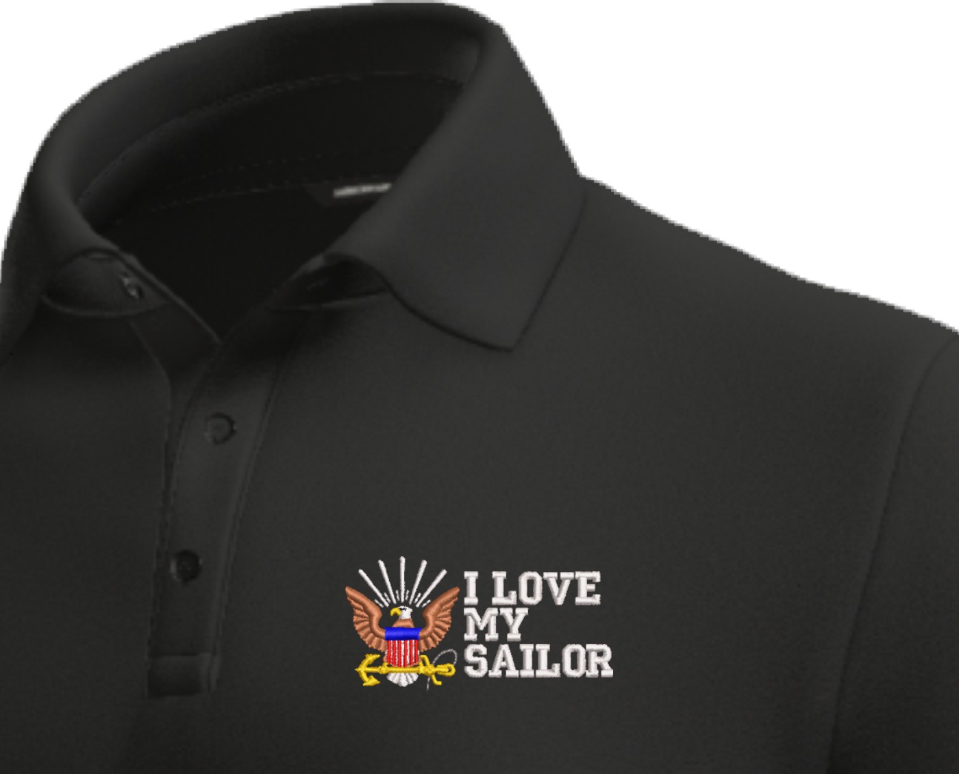 MilitaryBest has expanded its line of apparel with this custom embroidered I Love My Sailor U.S. Navy Moisture Wicking Polo. This Polo is made using 50/50 cotton/polyester moisture wicking material. This I Love My Sailor U.S. Navy Moisture Wicking Polo will make an excellent addition to your wardrobe, or a great gift. Your satisfaction is guaranteed! Each I Love My Sailor U.S. Navy Moisture Wicking Polo is directly embroidered at our facilities in Scottsboro, AL.