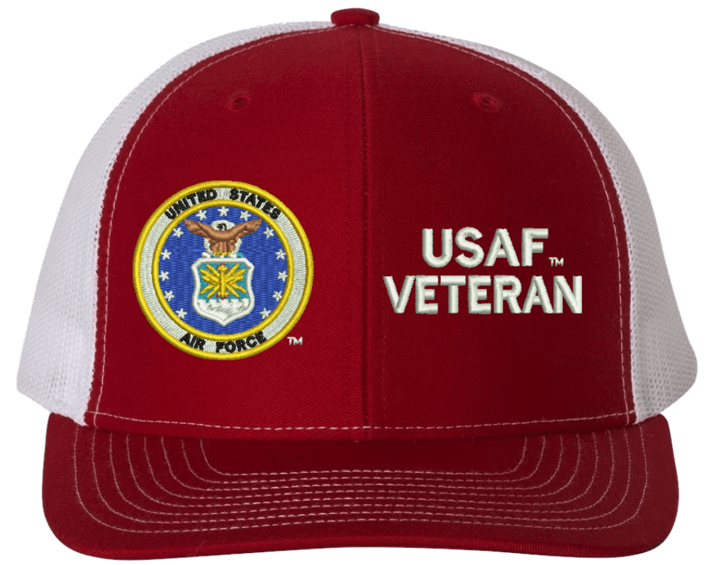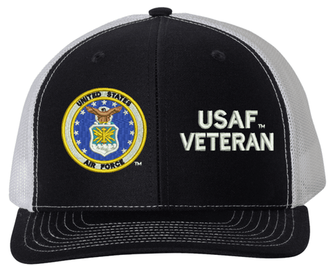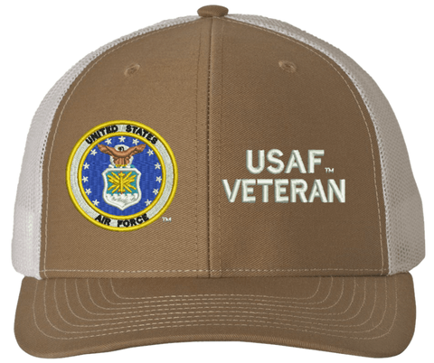 MilitaryBest is proud to offer this U.S. Air Force Symbol Veteran Mesh Back Cap. The design of this U.S. Air Force Cap is crisp, clean, and sure to be loved by people of all ages! Select above from our many cap colors. This U.S. Air Force Symbol Veteran Mesh Back Cap is crafted by our skilled embroidery technicians at our facilities in Scottsboro, AL. As with all MilitaryBest items, your satisfaction is guaranteed!Caps ordered with custom embroidered personalized back text require an additional 2 to 3 days production time. All custom back text will be embroidered in ALL CAPITAL LETTERS. Caps personalized with back text are non-returnable unless there is a material defect in the cap.