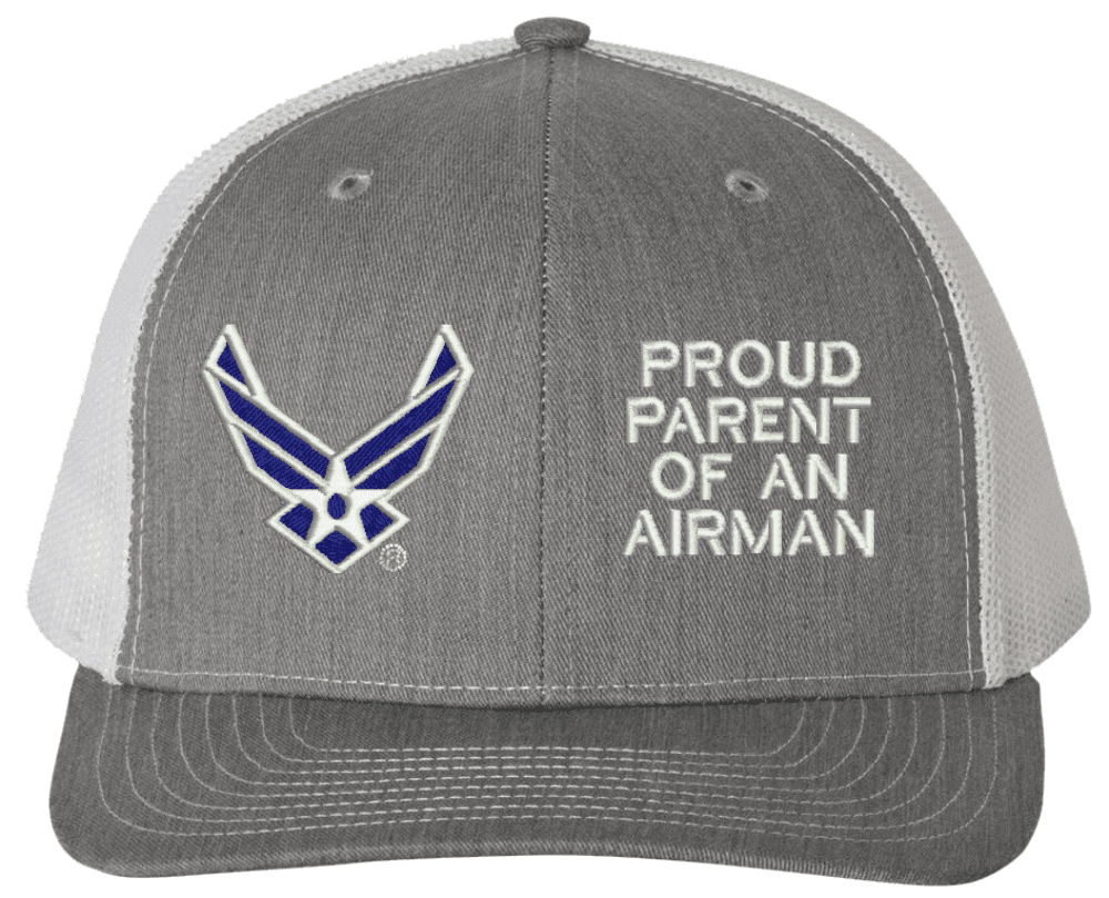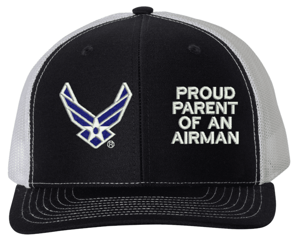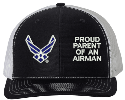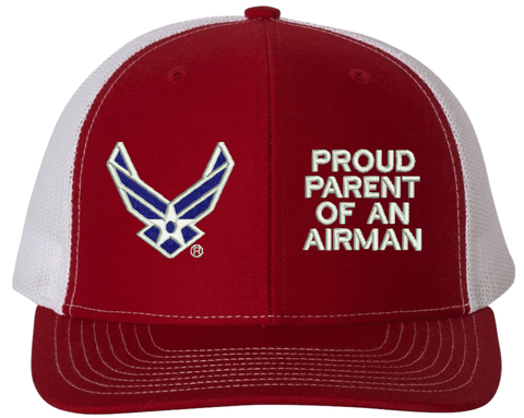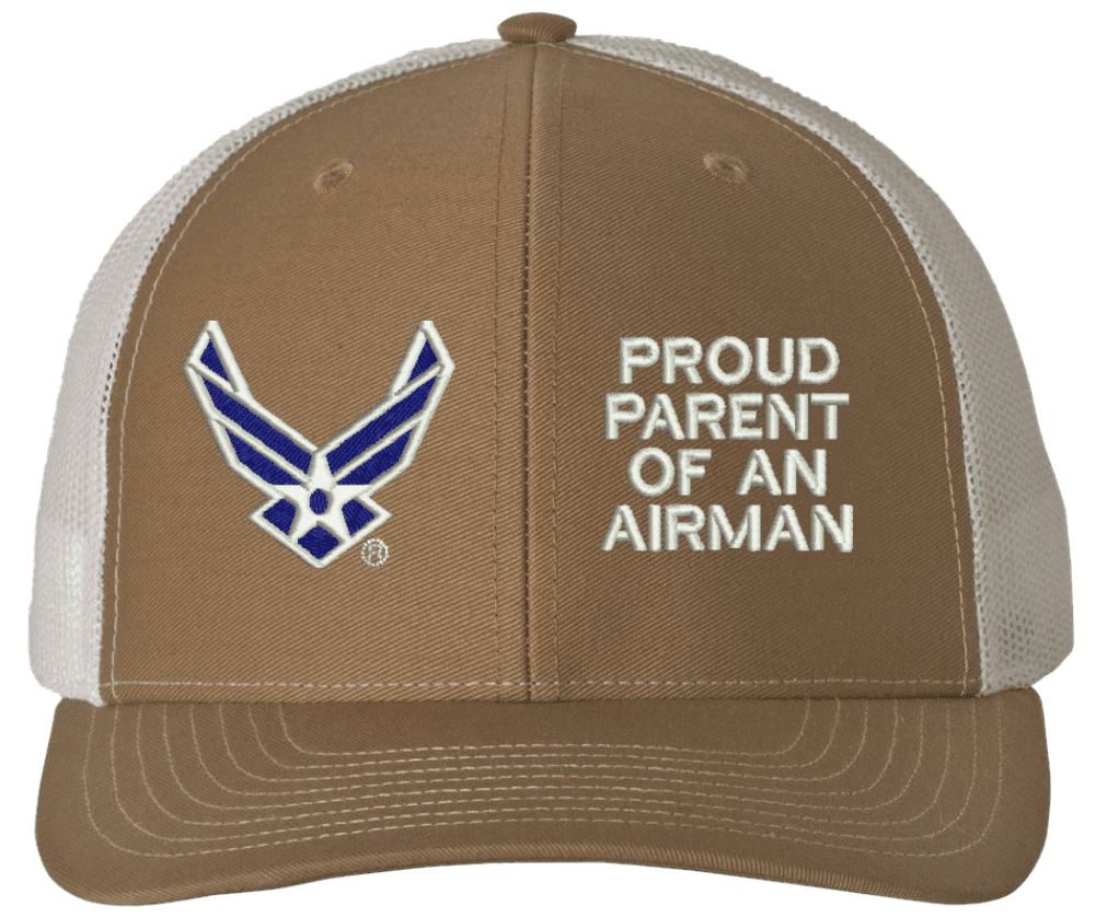 MilitaryBest is proud to offer this Proud Parent of an Airman U.S. Air Force Mesh Back Cap. The design of this U.S. Air Force Cap is crisp, clean, and sure to be loved by people of all ages! Select above from our many cap colors. This Proud Parent of an Airman U.S. Air Force Mesh Back Cap is crafted by our skilled embroidery technicians at our facilities in Scottsboro, AL. As with all MilitaryBest items, your satisfaction is guaranteed!Caps ordered with custom embroidered personalized back text require an additional 2 to 3 days production time. All custom back text will be embroidered in ALL CAPITAL LETTERS. Caps personalized with back text are non-returnable unless there is a material defect in the cap.