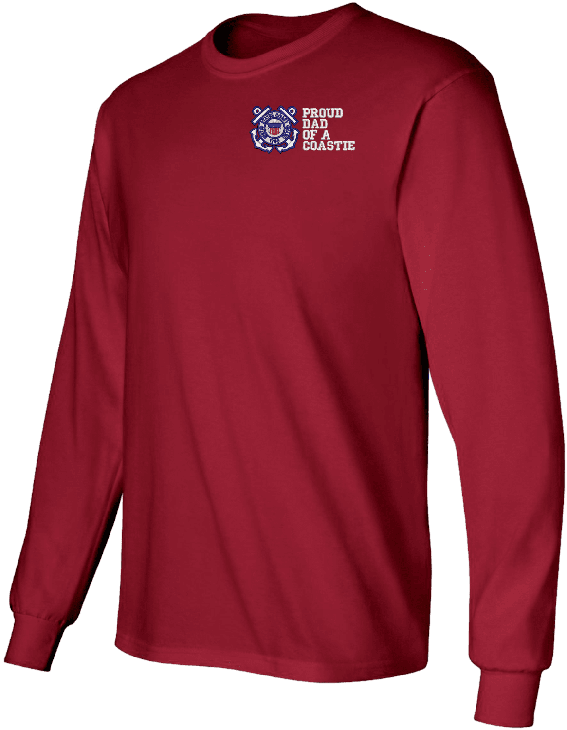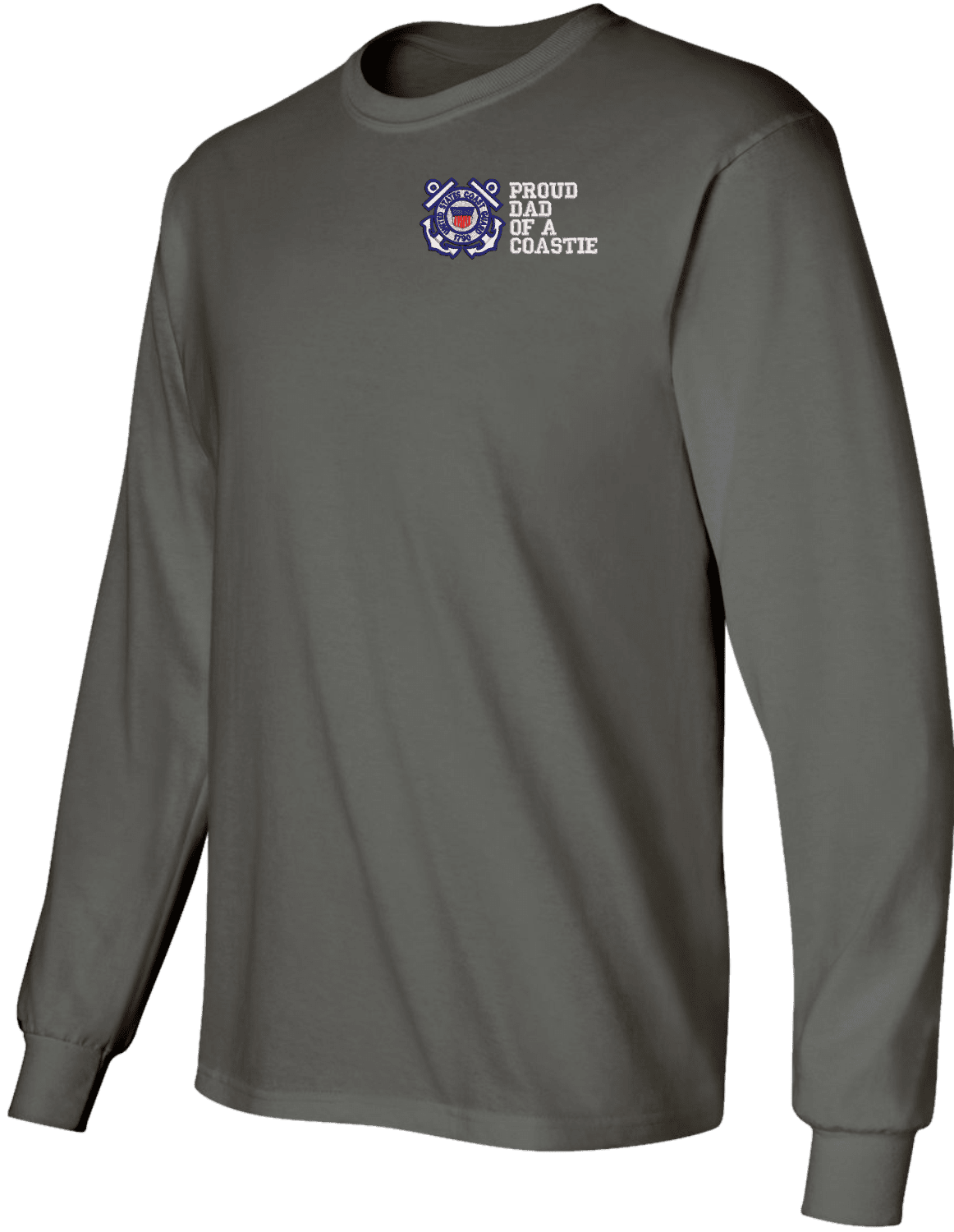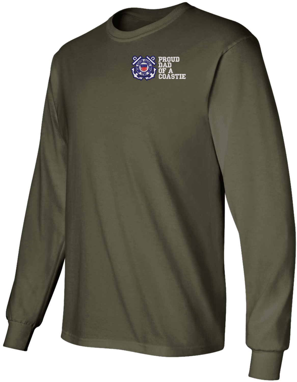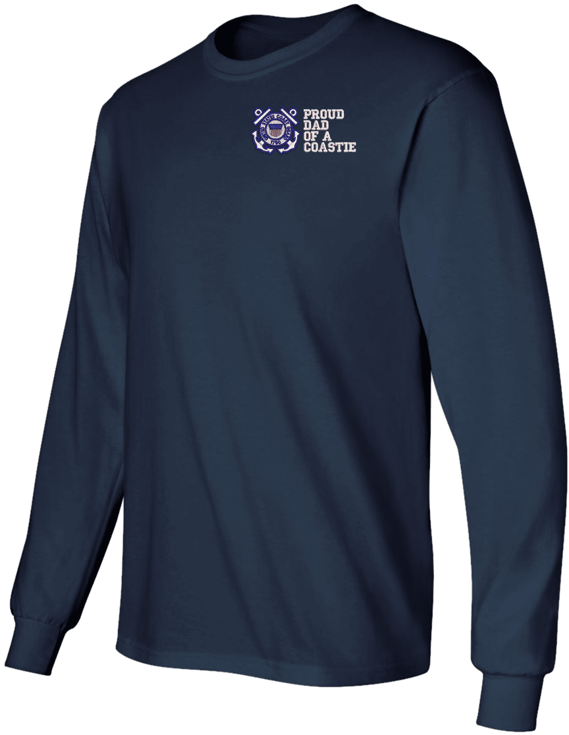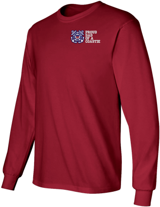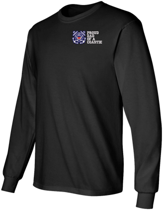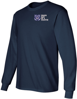 Note: Some of the Color Options pictured may not be available. Available Color Options are listed on the drop down menu above.MilitaryBest has expanded its line of apparel with this custom embroidered Proud Dad of a Coastie U.S. Coast Guard Embroidered Long Sleeve T-Shirt. This Gildan brand long sleeve t-shirt is made using a 6 oz pre-shrunk 100% cotton material. This Proud Dad of a Coastie U.S. Coast Guard Embroidered Long Sleeve T-Shirt will make an excellent addition to your wardrobe or a quality gift. This Proud Dad of a Coastie U.S. Coast Guard Embroidered Long Sleeve T-Shirt is custom embroidered at our facilities in Scottsboro, Alabama.