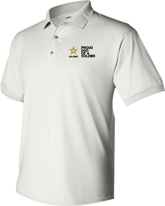 Note: Some of the Color Options pictured may not be available. Available Color Options are listed on the drop down menu above.MilitaryBest is proud to offer this quality Proud Dad of a Soldier U.S. Army Polo. Each Polo is available in either 100% Ringspun cotton pique or a 50/50 cotton/polyester blend. These quality Military Polos are proudly embroidered at our facilities in Scottsboro, AL. Support the Army MWR program by purchasing only from Licensed Vendors.
