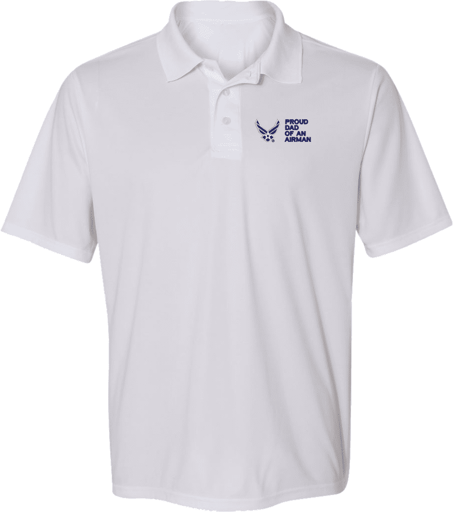 MilitaryBest has expanded its line of apparel with this custom embroidered Proud Dad of an Airman U.S. Air Force Moisture Wicking Polo. This Polo is made using 50/50 cotton/polyester moisture wicking material. This Proud Dad of an Airman U.S. Air Force Moisture Wicking Polo will make an excellent addition to your wardrobe, or a great gift. Your satisfaction is guaranteed! Each Proud Dad of an Airman U.S. Air Force Moisture Wicking Polo is directly embroidered at our facilities in Scottsboro, AL.