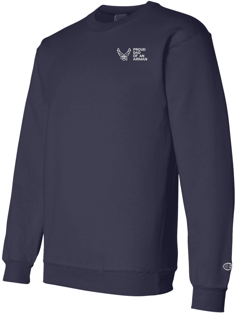 MilitaryBest has expanded its line of apparel with this custom embroidered Proud Dad of an Airman U.S. Air Force Sweatshirt. Each sweatshirt is direct embroidered onto either a Champion or Jerzees brand sweatshirt using a 9.5 oz 50/50 Cotton Poly blend material. This Proud Dad of an Airman U.S. Air Force Sweatshirt will make an excellent addition to your wardrobe, or a great gift. Your satisfaction is Guaranteed! This Proud Dad of an Airman U.S. Air Force Sweatshirt is custom embroidered at our facilities in Scottsboro, AL.