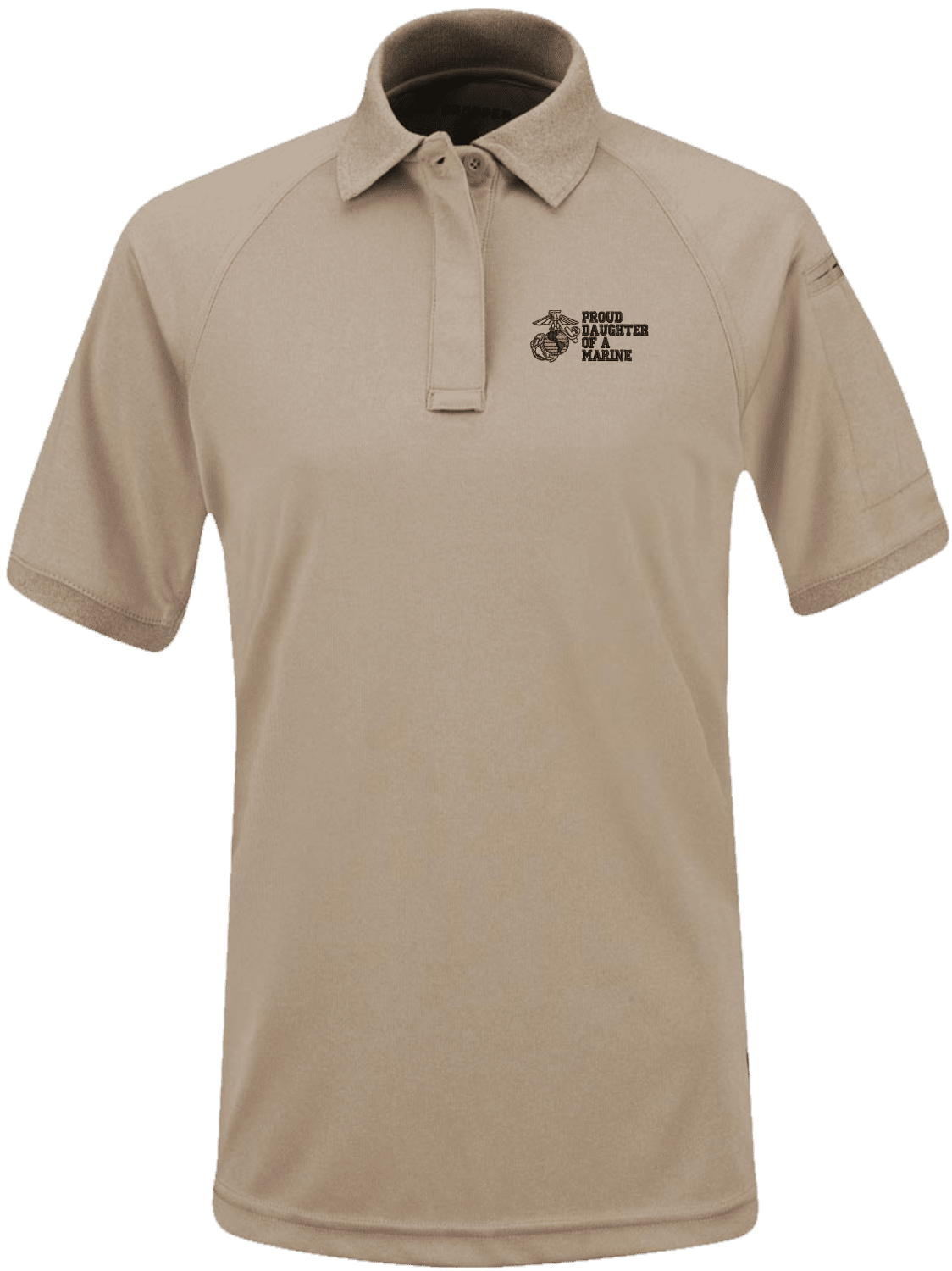 Note: Some of the Color Options pictured may not be available. Available Color Options are listed on the drop down menu above.MilitaryBest has expanded its line of apparel with this custom embroidered Proud Daughter of a Marine U.S. Marine Corps Propper Womens Snag Free Polo. Each polo is made using a Propper Snag Free 100% polyester moisture wicking material. This Proud Daughter of a Marine U.S. Marine Corps Propper Womens Snag Free Polo will make an excellent addition to your wardrobe, or a great gift. Your satisfaction is guaranteed! Each Proud Daughter of a Marine U.S. Marine Corps Propper Womens Snag Free Polo is directly embroidered at our facilities in Scottsboro, AL.