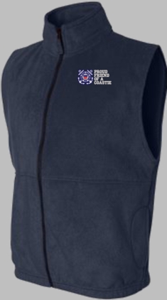Due to supply chain disruptions, some colors and sizes may not be available in the same Brand, in these cases a brand of comparable quality will be used. Feel free to call in advance of your order, with questions you may have.MilitaryBest is proud to offer this quality Proud Friend of a Coastie U.S. Coast Guard Full Zip Fleece Vest. This Proud Friend of a Coastie U.S. Coast Guard Full Zip Fleece Vest features a convertible collar with dyed-to-match zipper pull, oversized nylon reinforced slash pockets, and an elastic hem. It is made using a 100% anti-pill polyester Fleece Vest. This Proud Friend of a Coastie U.S. Coast Guard Full Zip Fleece Vest will make an excellent addition to your wardrobe, or a quality gift. Your satisfaction is guaranteed! These Vests are custom embroidered at our facilities in Scottsboro, AL.