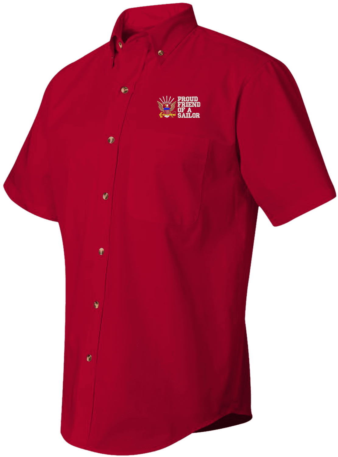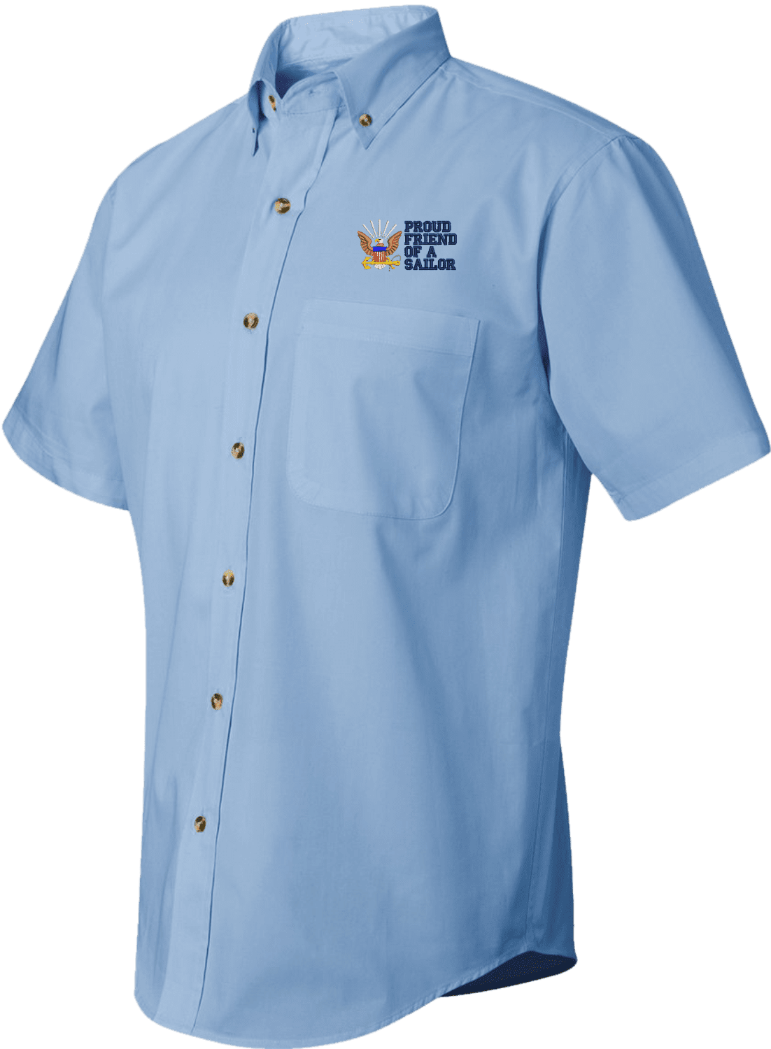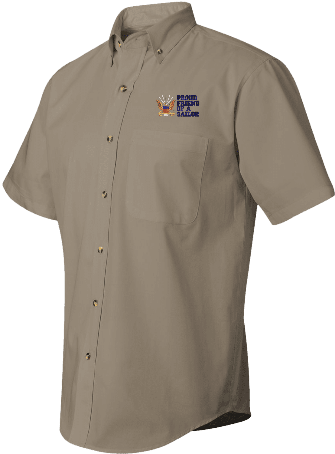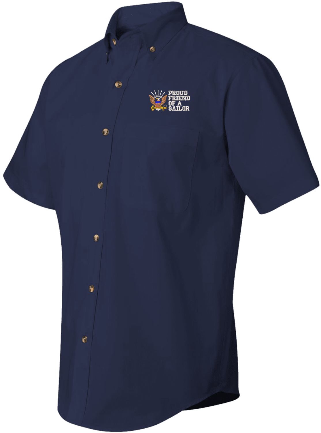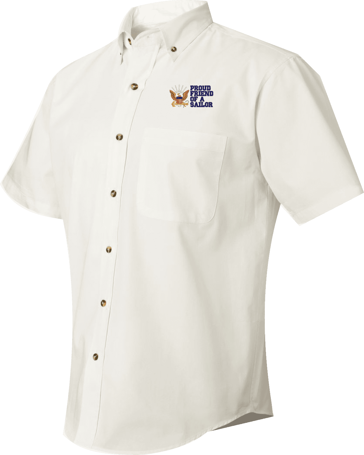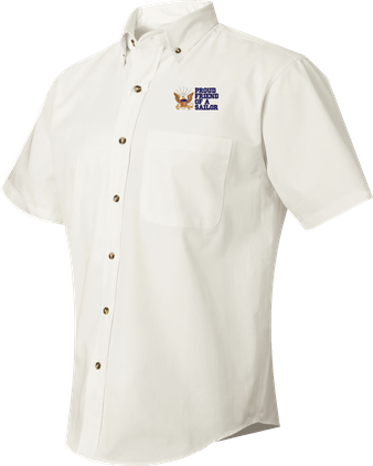 We are selling out of our remaining inventory of this discontinued item at a limited supply.MilitaryBest has expanded its line of apparel with this custom embroidered Proud Friend of a Sailor U.S. Navy Short Sleeve Dress Shirt. This Featherlite brand short sleeve button down dress shirt is made using a stain-resistant 60/40 cotton/polyester twill material. This Proud Friend of a Sailor U.S. Navy Short Sleeve Dress Shirt will make an excellent addition to your wardrobe or a quality gift. This Proud Friend of a Sailor U.S. Navy Short Sleeve Dress Shirt is custom embroidered at our facilities in Scottsboro, Alabama.