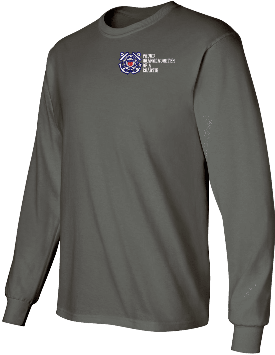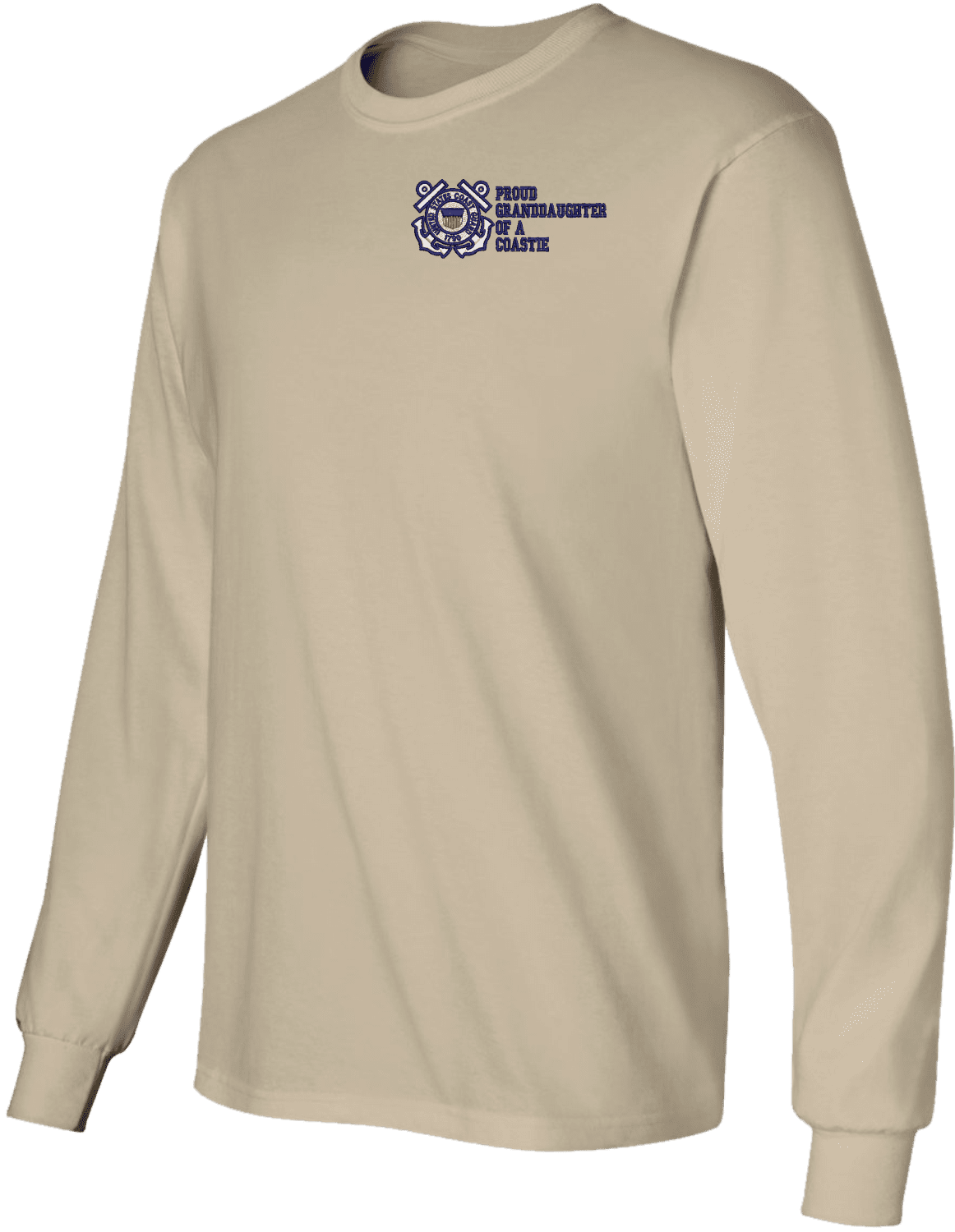 Note: Some of the Color Options pictured may not be available. Available Color Options are listed on the drop down menu above.MilitaryBest has expanded its line of apparel with this custom embroidered Proud Grandaughter of a Coastie U.S. Coast Guard Embroidered Long Sleeve T-Shirt. This Gildan brand long sleeve t-shirt is made using a 6 oz pre-shrunk 100% cotton material. This Proud Grandaughter of a Coastie U.S. Coast Guard Embroidered Long Sleeve T-Shirt will make an excellent addition to your wardrobe or a quality gift. This Proud Grandaughter of a Coastie U.S. Coast Guard Embroidered Long Sleeve T-Shirt is custom embroidered at our facilities in Scottsboro, Alabama.