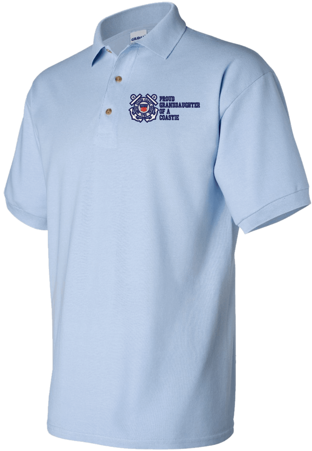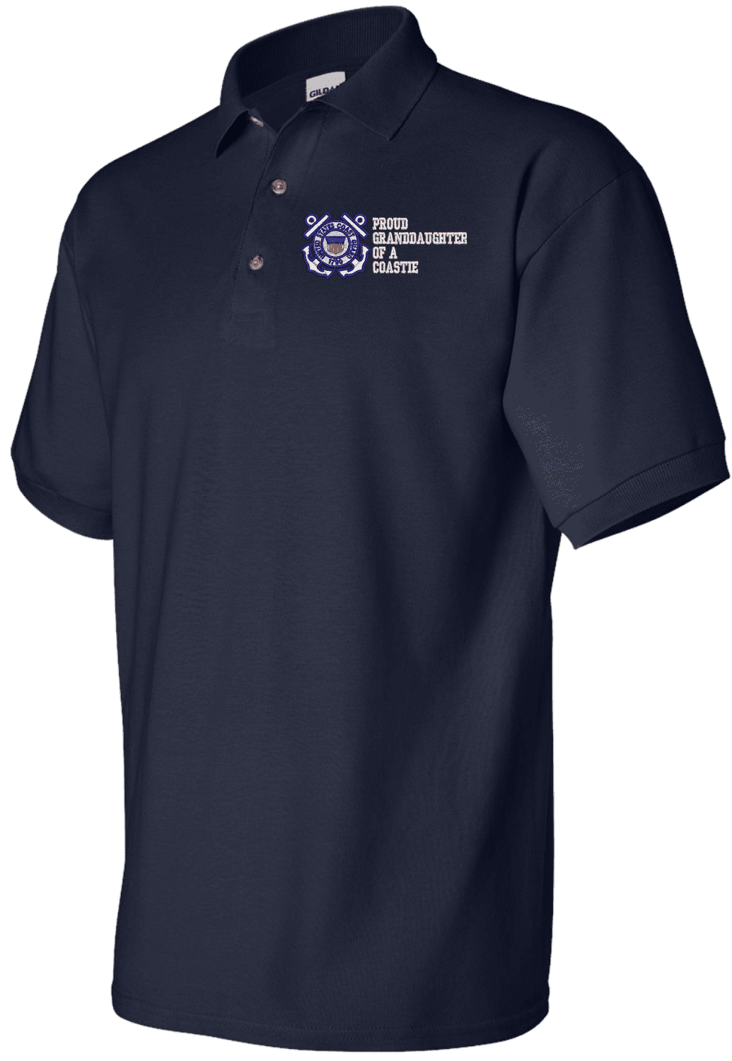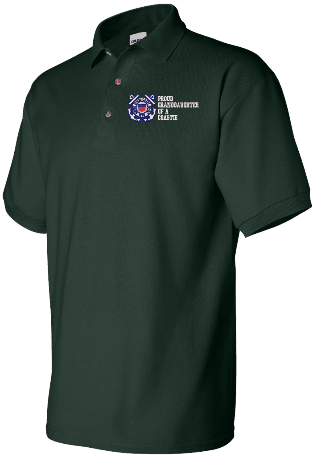Note: Some of the Color Options pictured may not be available. Available Color Options are listed on the drop down menu above.MilitaryBest is proud to offer this quality Proud Grandaughter of a Coastie U.S. Coast Guard Polo. Each Polo is available in either 100% Ringspun cotton pique or a 50/50 cotton/polyester blend. These quality Military Polos are proudly embroidered at our facilities in Scottsboro, AL. Support the Army MWR program by purchasing only from Licensed Vendors.
