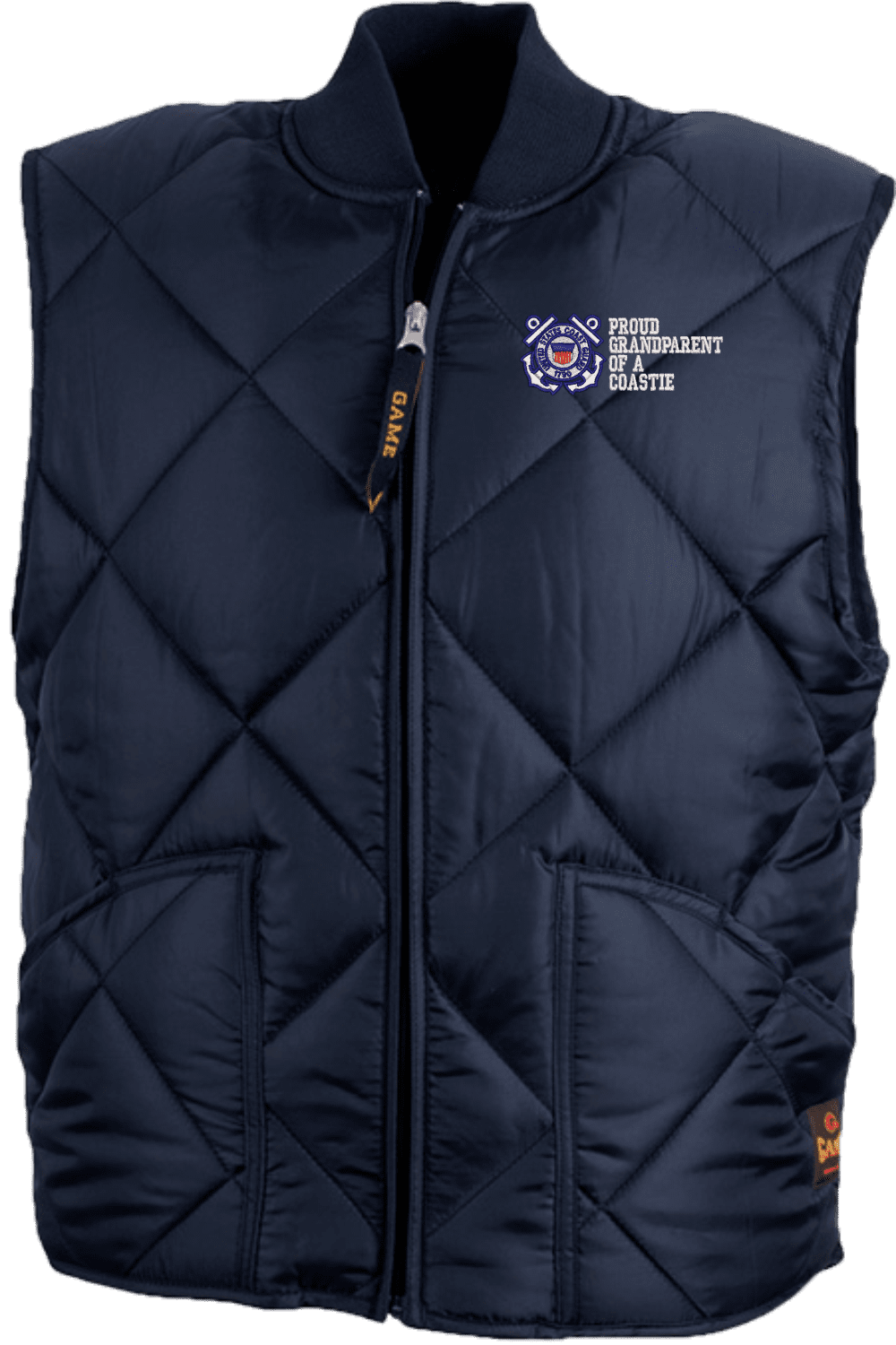 MilitaryBest is proud to offer this quality Proud GrandParent of a Coastie U.S. Coast Guard Game Sportswear Finest Vest. This Game Sportswear Proud GrandParent of a Coastie U.S. Coast Guard Game Sportswear Finest Vest will make an excellent addition to your wardrobe or a quality gift. This Proud GrandParent of a Coastie U.S. Coast Guard Game Sportswear Finest Vest is custom embroidered at our facilities in Scottsboro, Alabama.The Finest Vest Features: