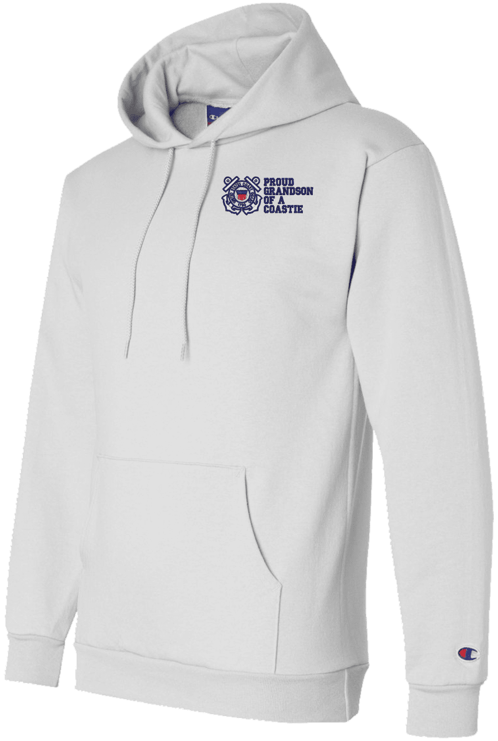 MilitaryBest has expanded its line of apparel with this custom embroidered Proud Grandson of a Coastie U.S. Coast Guard Hoodie. Each Hoodie is direct embroidered onto a Champion brand 9.5 oz 50/50 Cotton Poly blend. This Proud Grandson of a Coastie U.S. Coast Guard Hoodie will make an excellent addition to your wardrobe, or a great gift. Your satisfaction is Guaranteed! This Proud Grandson of a Coastie U.S. Coast Guard Hoodie is custom embroidered at our facilities in Scottsboro, AL.