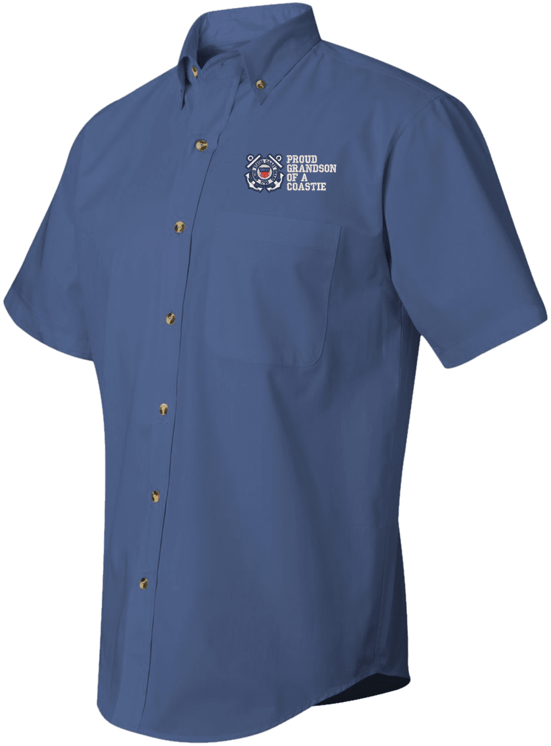 We are selling out of our remaining inventory of this discontinued item at a limited supply.MilitaryBest has expanded its line of apparel with this custom embroidered Proud Grandson of a Coastie U.S. Coast Guard Short Sleeve Dress Shirt. This Featherlite brand short sleeve button down dress shirt is made using a stain-resistant 60/40 cotton/polyester twill material. This Proud Grandson of a Coastie U.S. Coast Guard Short Sleeve Dress Shirt will make an excellent addition to your wardrobe or a quality gift. This Proud Grandson of a Coastie U.S. Coast Guard Short Sleeve Dress Shirt is custom embroidered at our facilities in Scottsboro, Alabama.