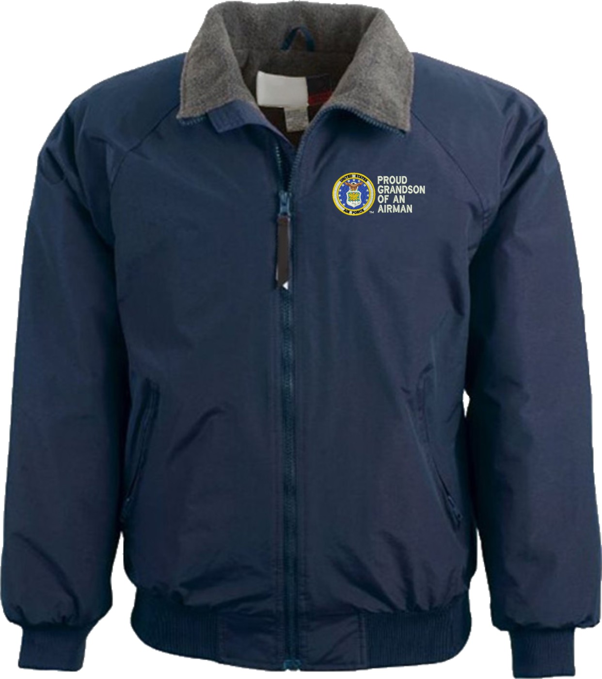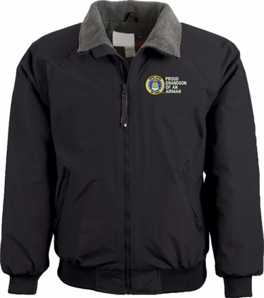 Note: Some of the Color Options pictured may not be available. Available Color Options are listed on the drop down menu above.MilitaryBest is proud to offer this quality Proud Grandson of an Airman U.S. Air Force 3 Season Jacket. This Proud Grandson of an Airman U.S. Air Force 3 Season Jacket is made from a 3-Layer system consisting of a nylon shell, an insulator layer, Nylon-lined sleeves, and an inside layer of fleece for comfort. The jacket features include a sturdy black enamel front-zipper, raglan sleeves, outsize zip pockets, an inside zip security pocket, YKK zippers, and a banded-bottom. This Proud Grandson of an Airman U.S. Air Force 3 Season Jacket will make an excellent addition to your wardrobe, or a quality gift. Your satisfaction is guaranteed! Depending on your location this jacket can be worn in fall, winter, and spring. This jacket is custom embroidered at our facilities in Scottsboro, AL.
