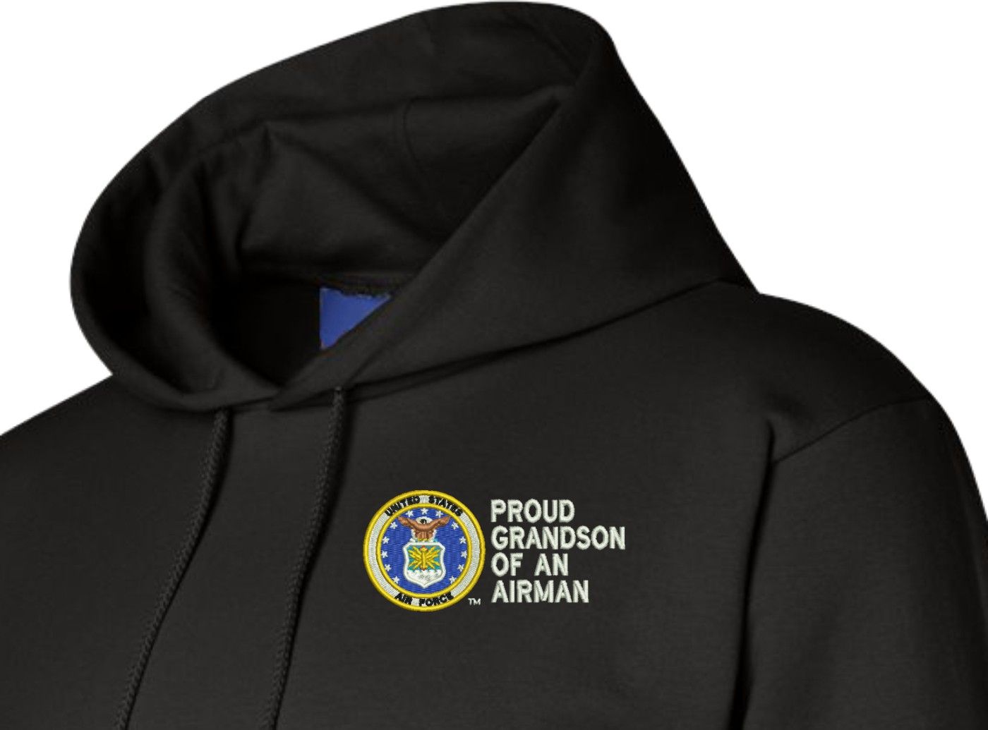 MilitaryBest has expanded its line of apparel with this custom embroidered Proud Grandson of an Airman U.S. Air Force Hoodie. Each Hoodie is direct embroidered onto a Champion brand 9.5 oz 50/50 Cotton Poly blend. This Proud Grandson of an Airman U.S. Air Force Hoodie will make an excellent addition to your wardrobe, or a great gift. Your satisfaction is Guaranteed! This Proud Grandson of an Airman U.S. Air Force Hoodie is custom embroidered at our facilities in Scottsboro, AL.