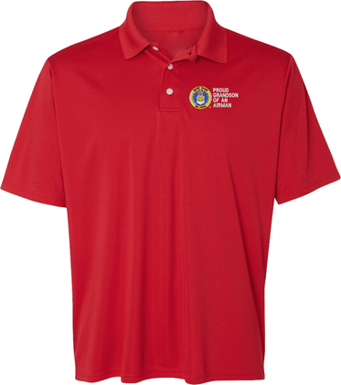 MilitaryBest has expanded its line of apparel with this custom embroidered Proud Grandson of an Airman U.S. Air Force Moisture Wicking Polo. This Polo is made using 50/50 cotton/polyester moisture wicking material. This Proud Grandson of an Airman U.S. Air Force Moisture Wicking Polo will make an excellent addition to your wardrobe, or a great gift. Your satisfaction is guaranteed! Each Proud Grandson of an Airman U.S. Air Force Moisture Wicking Polo is directly embroidered at our facilities in Scottsboro, AL.
