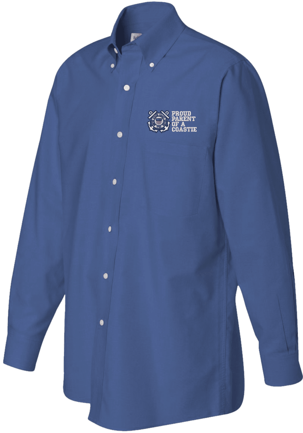 Note: Some of the Color Options pictured may not be available. Available Color Options are listed on the drop down menu above.MilitaryBest has expanded its line of apparel with this custom embroidered Proud Parent of a Coastie U.S. Coast Guard Oxford Shirt. This Van Heusen brand Oxford long sleeve button down dress shirt is made using a wrinkle-free, pill and stain resistant 60/40 cotton/polyester material. This Proud Parent of a Coastie U.S. Coast Guard Oxford Shirt will make an excellent addition to your wardrobe or a quality gift. This Proud Parent of a Coastie U.S. Coast Guard Oxford Shirt is custom embroidered at our facilities in Scottsboro, Alabama.