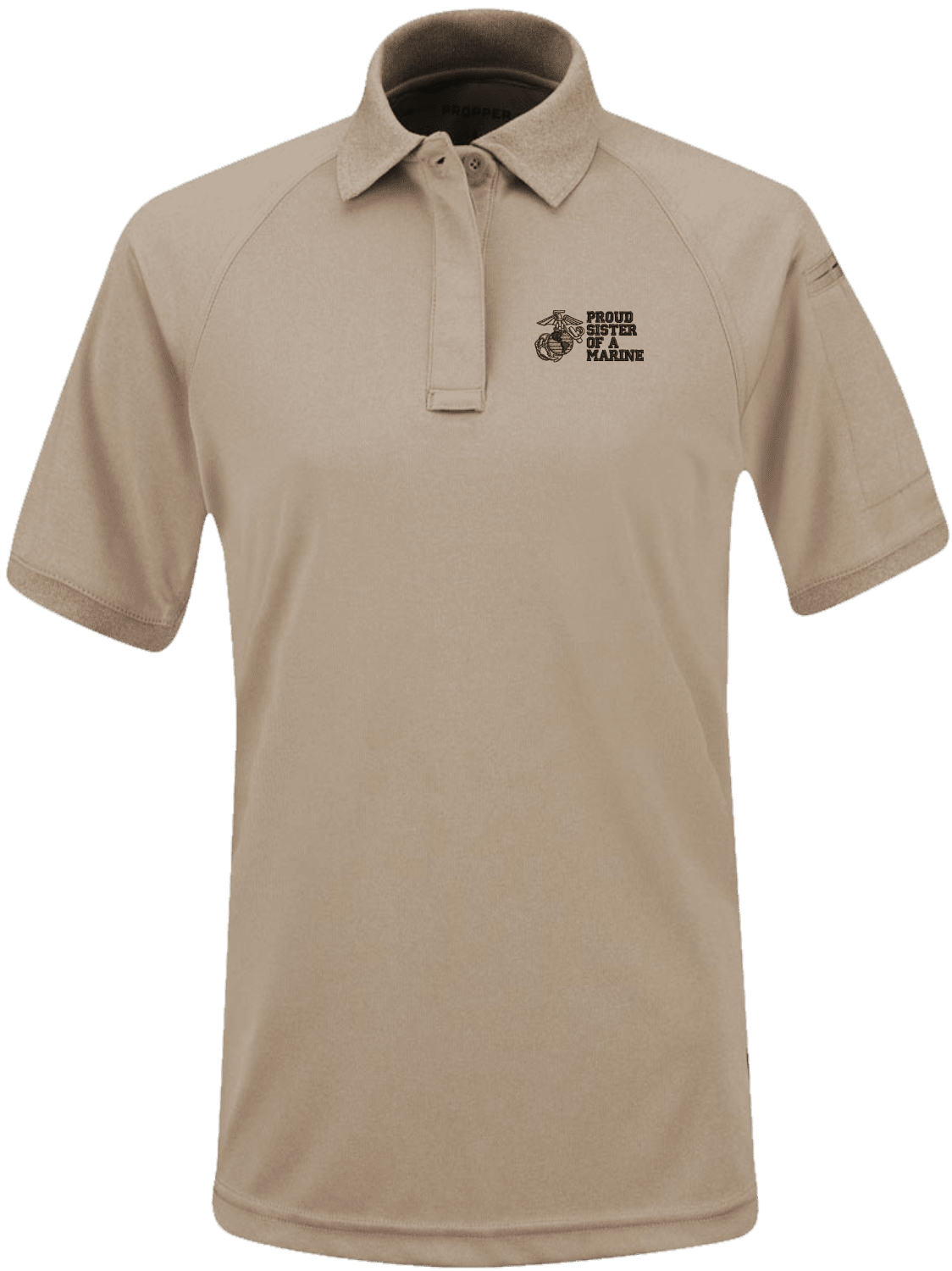 Note: Some of the Color Options pictured may not be available. Available Color Options are listed on the drop down menu above.MilitaryBest has expanded its line of apparel with this custom embroidered Proud Sister of a Marine U.S. Marine Corps Propper Womens Snag Free Polo. Each polo is made using a Propper Snag Free 100% polyester moisture wicking material. This Proud Sister of a Marine U.S. Marine Corps Propper Womens Snag Free Polo will make an excellent addition to your wardrobe, or a great gift. Your satisfaction is guaranteed! Each Proud Sister of a Marine U.S. Marine Corps Propper Womens Snag Free Polo is directly embroidered at our facilities in Scottsboro, AL.