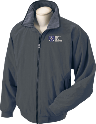 Note: Some of the Color Options pictured may not be available. Available Color Options are listed on the drop down menu above.MilitaryBest is proud to offer this quality Proud Son of a Coastie U.S. Coast Guard 3 Season Jacket. This Proud Son of a Coastie U.S. Coast Guard 3 Season Jacket is made from a 3-Layer system consisting of a nylon shell, an insulator layer, Nylon-lined sleeves, and an inside layer of fleece for comfort. The jacket features include a sturdy black enamel front-zipper, raglan sleeves, outsize zip pockets, an inside zip security pocket, YKK zippers, and a banded-bottom. This Proud Son of a Coastie U.S. Coast Guard 3 Season Jacket will make an excellent addition to your wardrobe, or a quality gift. Your satisfaction is guaranteed! Depending on your location this jacket can be worn in fall, winter, and spring. This jacket is custom embroidered at our facilities in Scottsboro, AL.
