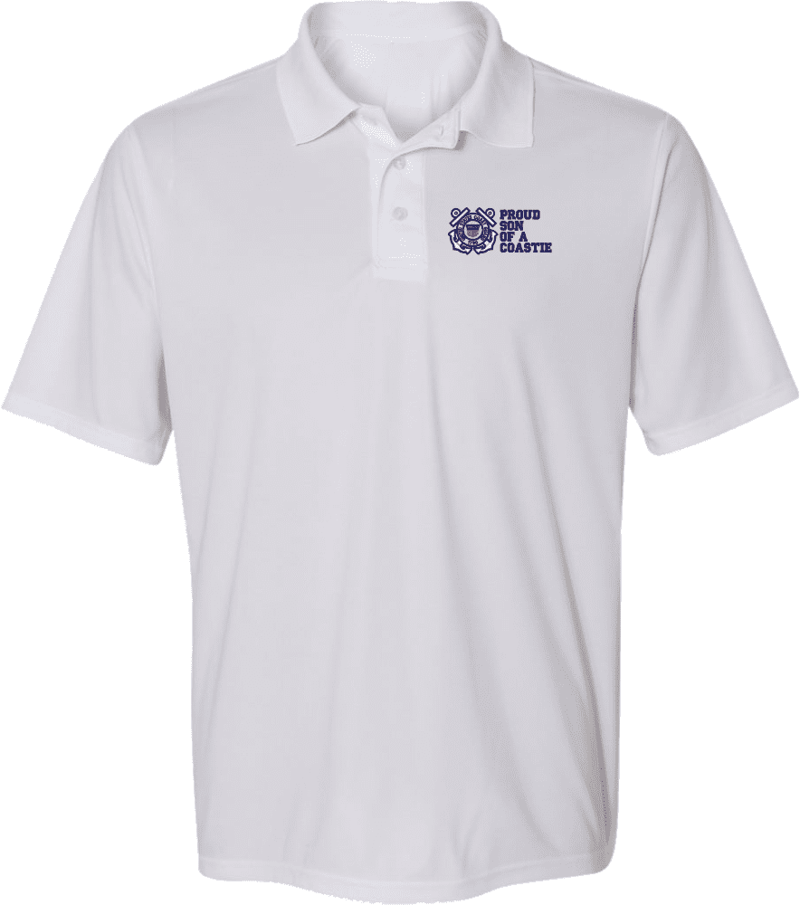 MilitaryBest has expanded its line of apparel with this custom embroidered Proud Son of a Coastie U.S. Coast Guard Moisture Wicking Polo. This Polo is made using 50/50 cotton/polyester moisture wicking material. This Proud Son of a Coastie U.S. Coast Guard Moisture Wicking Polo will make an excellent addition to your wardrobe, or a great gift. Your satisfaction is guaranteed! Each Proud Son of a Coastie U.S. Coast Guard Moisture Wicking Polo is directly embroidered at our facilities in Scottsboro, AL.