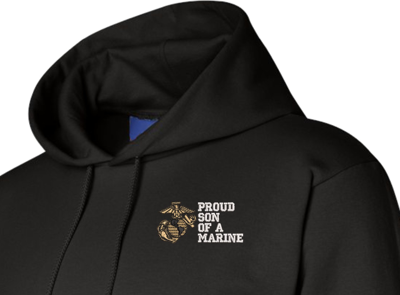 MilitaryBest has expanded its line of apparel with this custom embroidered Proud Son of a Marine U.S. Marine Corps Hoodie. Each Hoodie is direct embroidered onto a Champion brand 9.5 oz 50/50 Cotton Poly blend. This Proud Son of a Marine U.S. Marine Corps Hoodie will make an excellent addition to your wardrobe, or a great gift. Your satisfaction is Guaranteed! This Proud Son of a Marine U.S. Marine Corps Hoodie is custom embroidered at our facilities in Scottsboro, AL.