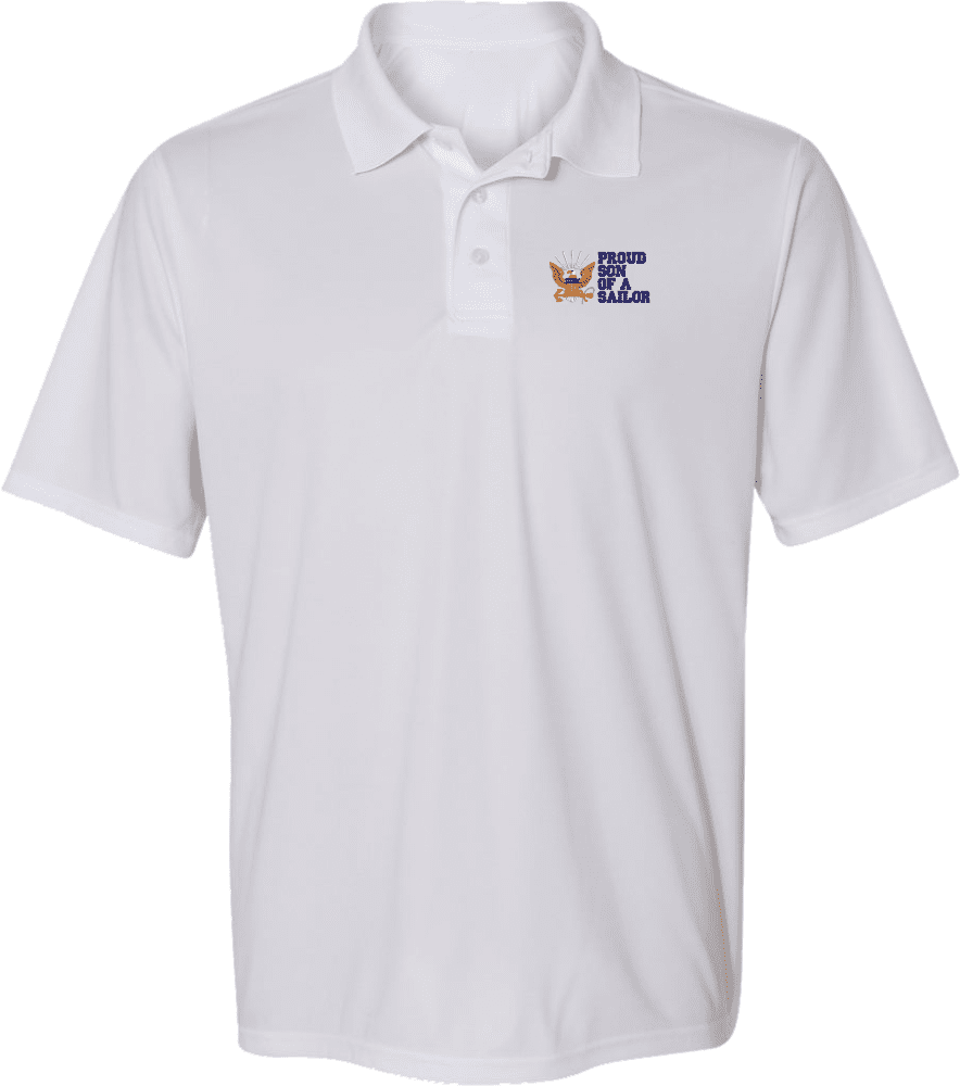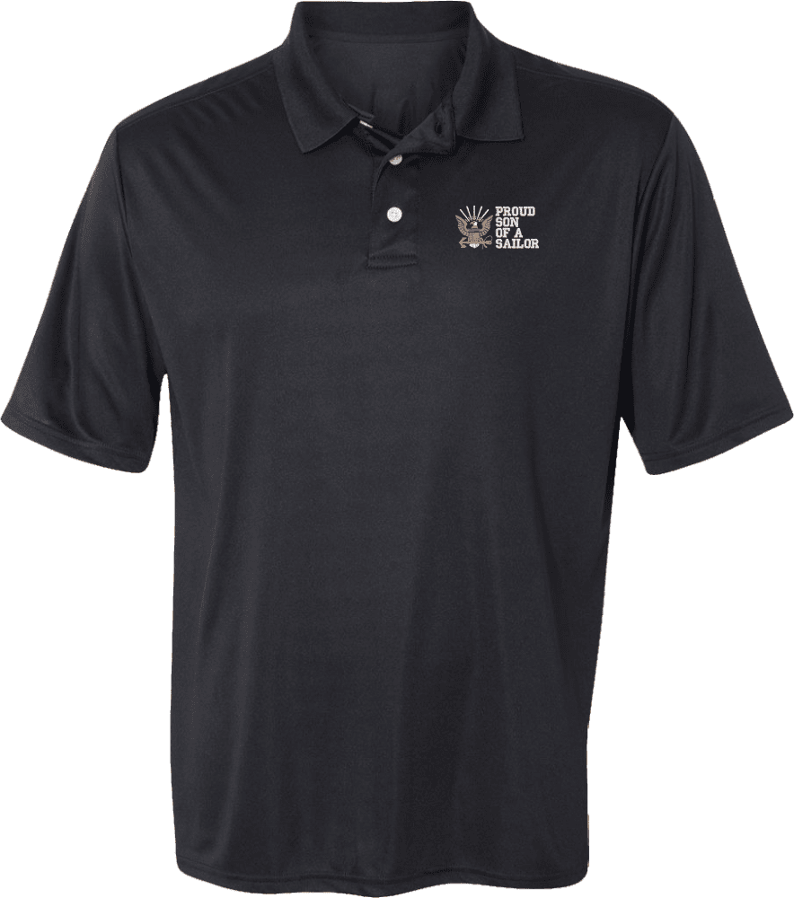 MilitaryBest has expanded its line of apparel with this custom embroidered Proud Son of a Sailor U.S. Navy Moisture Wicking Polo. This Polo is made using 50/50 cotton/polyester moisture wicking material. This Proud Son of a Sailor U.S. Navy Moisture Wicking Polo will make an excellent addition to your wardrobe, or a great gift. Your satisfaction is guaranteed! Each Proud Son of a Sailor U.S. Navy Moisture Wicking Polo is directly embroidered at our facilities in Scottsboro, AL.