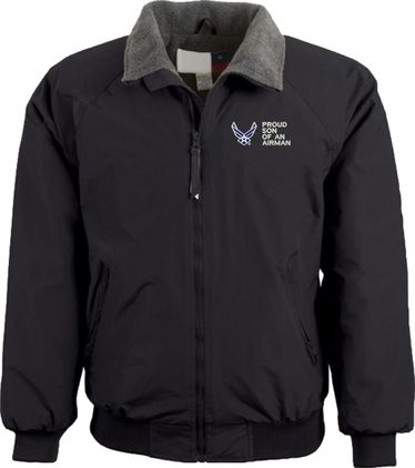Note: Some of the Color Options pictured may not be available. Available Color Options are listed on the drop down menu above.MilitaryBest is proud to offer this quality Proud Son of an Airman U.S. Air Force 3 Season Jacket. This Proud Son of an Airman U.S. Air Force 3 Season Jacket is made from a 3-Layer system consisting of a nylon shell, an insulator layer, Nylon-lined sleeves, and an inside layer of fleece for comfort. The jacket features include a sturdy black enamel front-zipper, raglan sleeves, outsize zip pockets, an inside zip security pocket, YKK zippers, and a banded-bottom. This Proud Son of an Airman U.S. Air Force 3 Season Jacket will make an excellent addition to your wardrobe, or a quality gift. Your satisfaction is guaranteed! Depending on your location this jacket can be worn in fall, winter, and spring. This jacket is custom embroidered at our facilities in Scottsboro, AL.