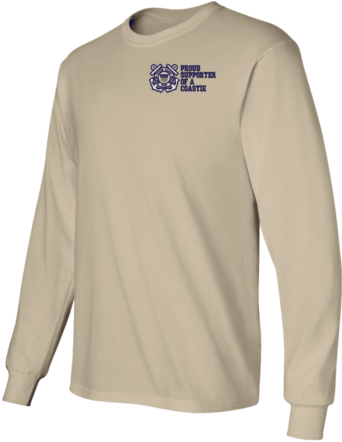 Note: Some of the Color Options pictured may not be available. Available Color Options are listed on the drop down menu above.MilitaryBest has expanded its line of apparel with this custom embroidered Proud Supporter of a Coastie U.S. Coast Guard Embroidered Long Sleeve T-Shirt. This Gildan brand long sleeve t-shirt is made using a 6 oz pre-shrunk 100% cotton material. This Proud Supporter of a Coastie U.S. Coast Guard Embroidered Long Sleeve T-Shirt will make an excellent addition to your wardrobe or a quality gift. This Proud Supporter of a Coastie U.S. Coast Guard Embroidered Long Sleeve T-Shirt is custom embroidered at our facilities in Scottsboro, Alabama.