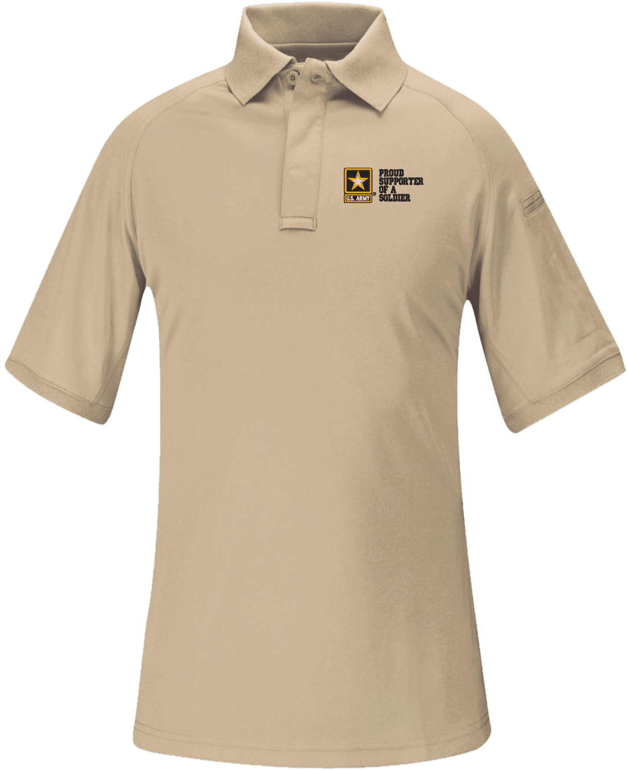 Note: Some of the Color Options pictured may not be available. Available Color Options are listed on the drop down menu above.MilitaryBest has expanded its line of apparel with this custom embroidered Proud Supporter of a Soldier U.S. Army Propper Snag Free Polo. Each polo is made using a Propper Snag Free 100% polyester moisture wicking material. This Proud Supporter of a Soldier U.S. Army Propper Snag Free Polo will make an excellent addition to your wardrobe, or a great gift. Your satisfaction is guaranteed! Each Proud Supporter of a Soldier U.S. Army Propper Snag Free Polo is directly embroidered at our facilities in Scottsboro, AL.