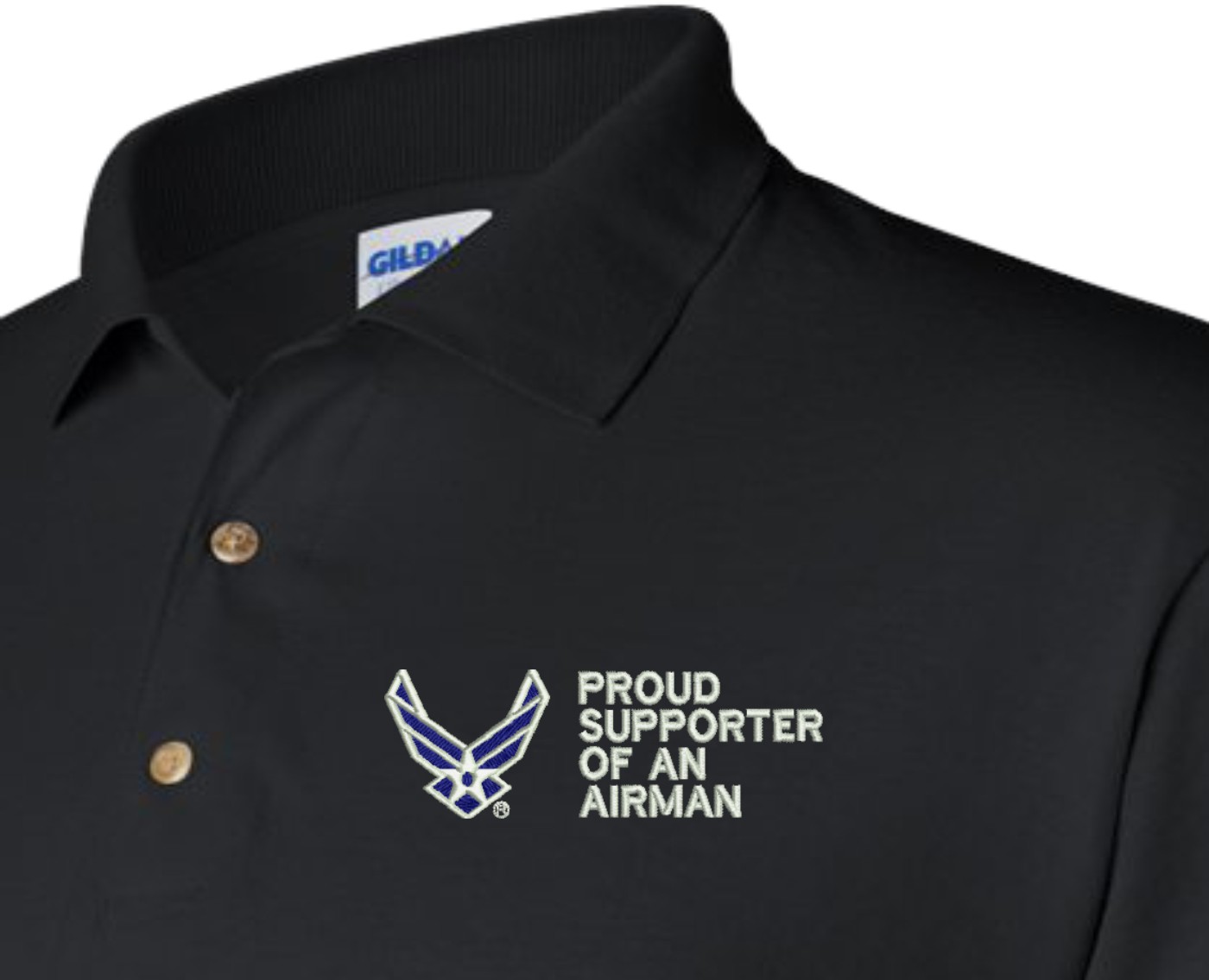 Note: Some of the Color Options pictured may not be available. Available Color Options are listed on the drop down menu above.MilitaryBest is proud to offer this quality Proud Supporter of an Airman U.S. Air Force Polo. Each Polo is available in either 100% Ringspun cotton pique or a 50/50 cotton/polyester blend. These quality Military Polos are proudly embroidered at our facilities in Scottsboro, AL. Support the Army MWR program by purchasing only from Licensed Vendors.