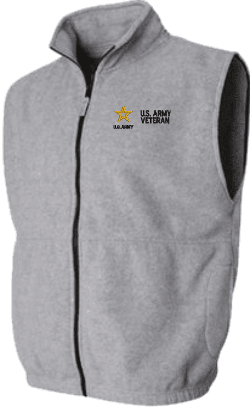 Due to supply chain disruptions, some colors and sizes may not be available in the same Brand, in these cases a brand of comparable quality will be used. Feel free to call in advance of your order, with questions you may have.MilitaryBest is proud to offer this quality U. S. Army Veteran Full Zip Fleece Vest. This U. S. Army Veteran Full Zip Fleece Vest features a convertible collar with dyed-to-match zipper pull, oversized nylon reinforced slash pockets, and an elastic hem. It is made using a 100% anti-pill polyester Fleece Vest. This U. S. Army Veteran Full Zip Fleece Vest will make an excellent addition to your wardrobe, or a quality gift. Your satisfaction is guaranteed! These Vests are custom embroidered at our facilities in Scottsboro, AL.