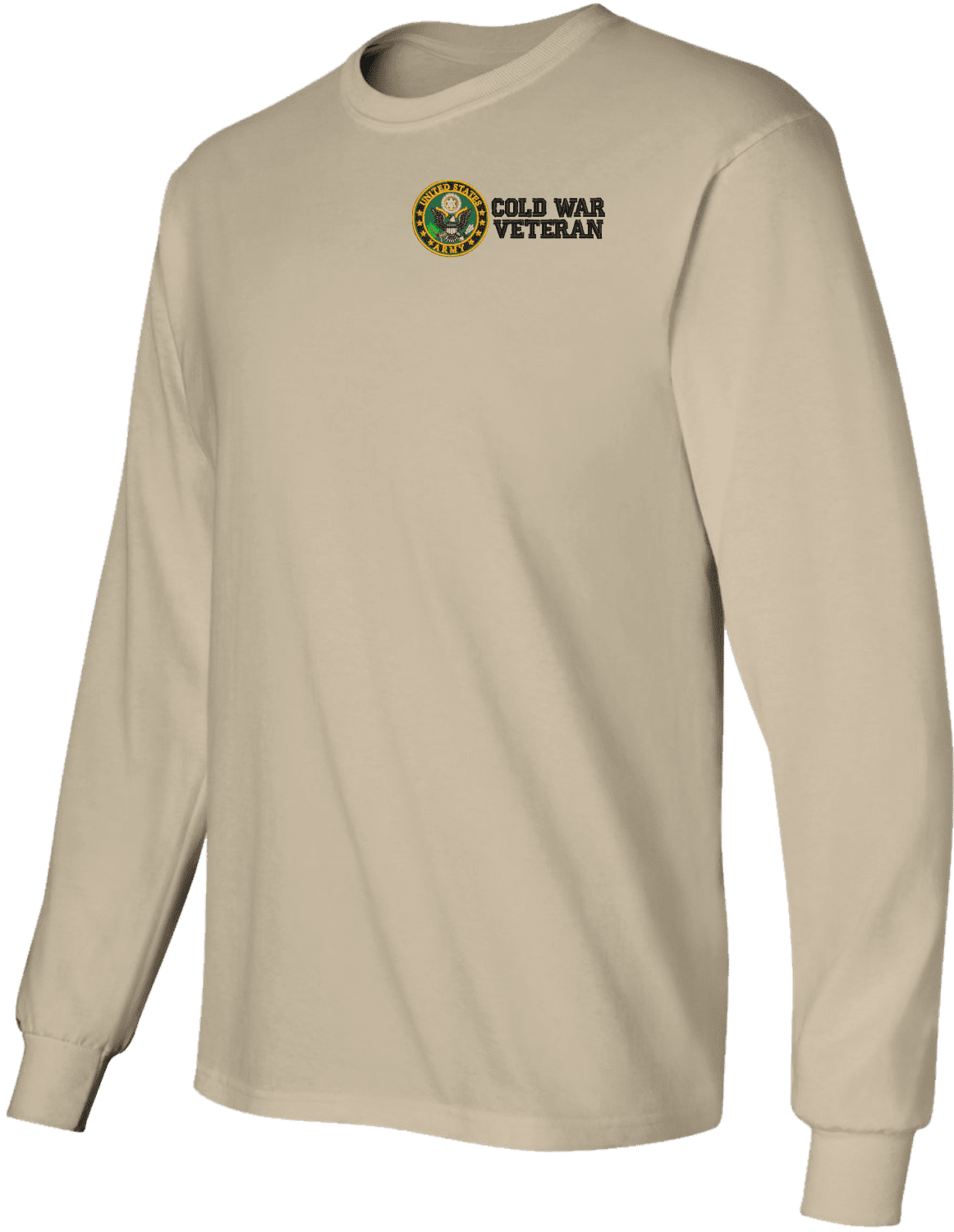 Note: Some of the Color Options pictured may not be available. Available Color Options are listed on the drop down menu above.MilitaryBest has expanded its line of apparel with this custom embroidered U.S. Army Cold War Veteran Embroidered Long Sleeve T-Shirt. This Gildan brand long sleeve t-shirt is made using a 6 oz pre-shrunk 100% cotton material. This U.S. Army Cold War Veteran Embroidered Long Sleeve T-Shirt will make an excellent addition to your wardrobe or a quality gift. This U.S. Army Cold War Veteran Embroidered Long Sleeve T-Shirt is custom embroidered at our facilities in Scottsboro, Alabama.