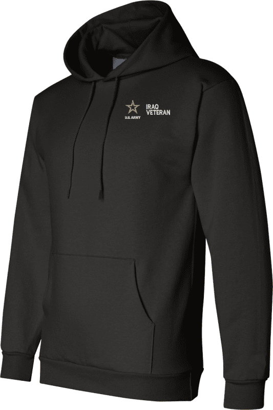 MilitaryBest has expanded its line of apparel with this custom embroidered U.S. Army Iraq Veteran Hoodie. Each Hoodie is direct embroidered onto a Champion brand 9.5 oz 50/50 Cotton Poly blend. This U.S. Army Iraq Veteran Hoodie will make an excellent addition to your wardrobe, or a great gift. Your satisfaction is Guaranteed! This U.S. Army Iraq Veteran Hoodie is custom embroidered at our facilities in Scottsboro, AL.