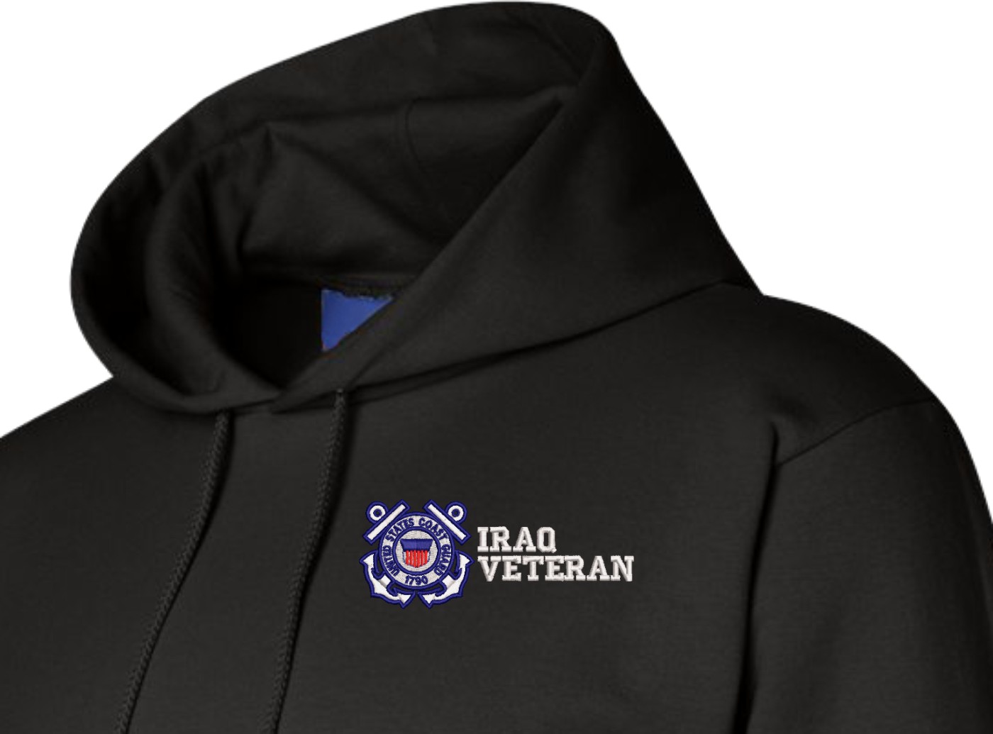 MilitaryBest has expanded its line of apparel with this custom embroidered U.S. Coast Guard Iraq Veteran Hoodie. Each Hoodie is direct embroidered onto a Champion brand 9.5 oz 50/50 Cotton Poly blend. This U.S. Coast Guard Iraq Veteran Hoodie will make an excellent addition to your wardrobe, or a great gift. Your satisfaction is Guaranteed! This U.S. Coast Guard Iraq Veteran Hoodie is custom embroidered at our facilities in Scottsboro, AL.