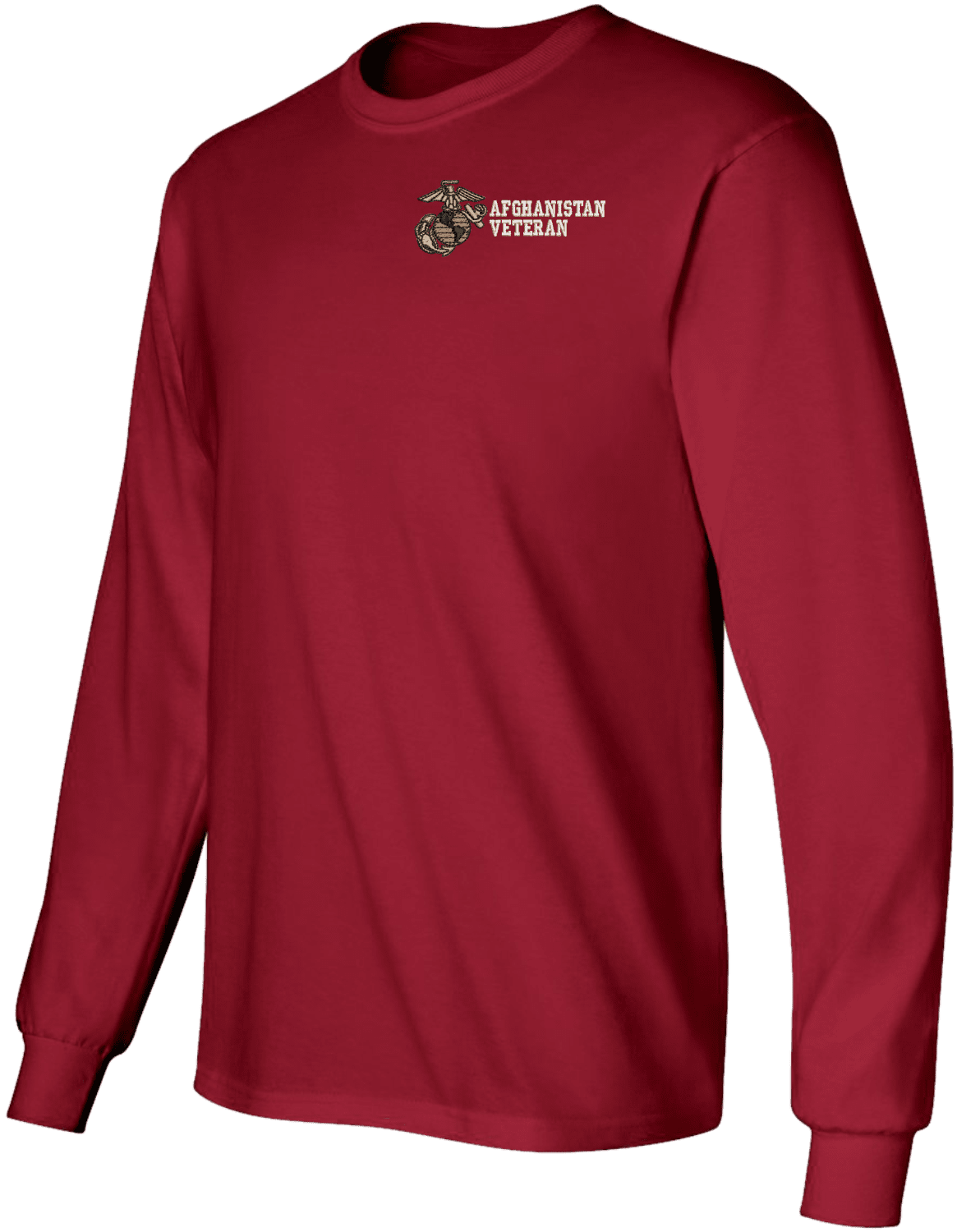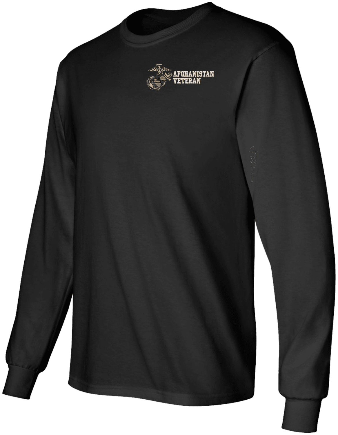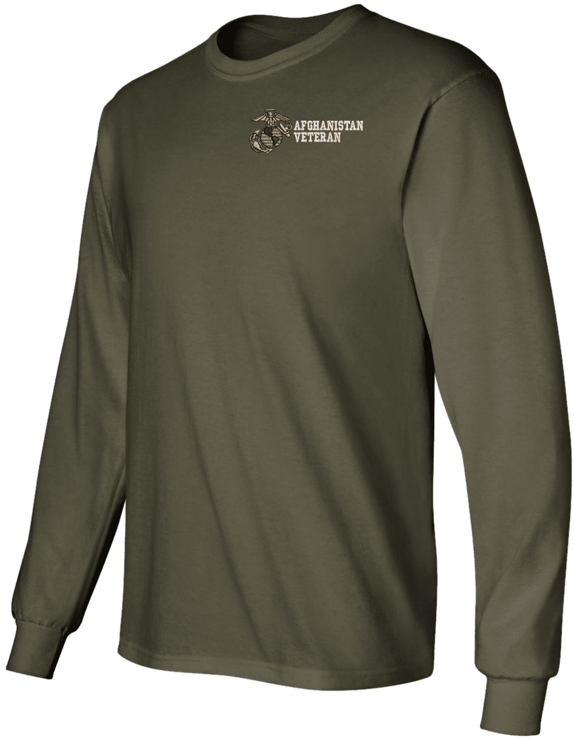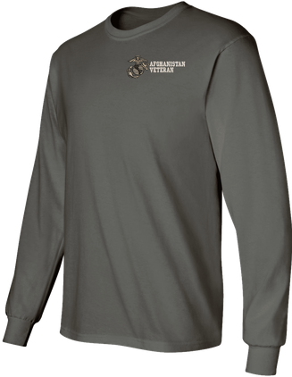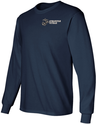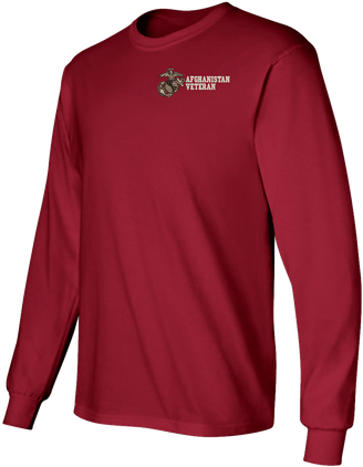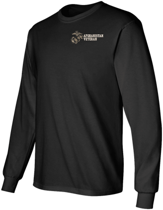 Note: Some of the Color Options pictured may not be available. Available Color Options are listed on the drop down menu above.MilitaryBest has expanded its line of apparel with this custom embroidered U.S. Marine Corps Afghanistan Veteran Embroidered Long Sleeve T-Shirt. This Gildan brand long sleeve t-shirt is made using a 6 oz pre-shrunk 100% cotton material. This U.S. Marine Corps Afghanistan Veteran Embroidered Long Sleeve T-Shirt will make an excellent addition to your wardrobe or a quality gift. This U.S. Marine Corps Afghanistan Veteran Embroidered Long Sleeve T-Shirt is custom embroidered at our facilities in Scottsboro, Alabama.