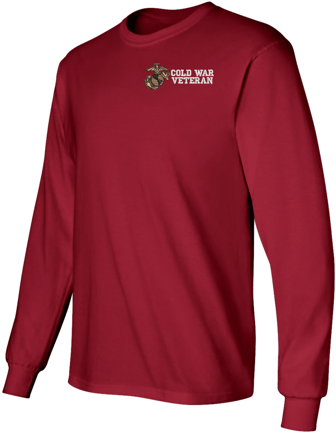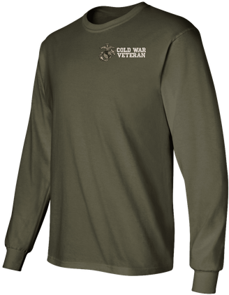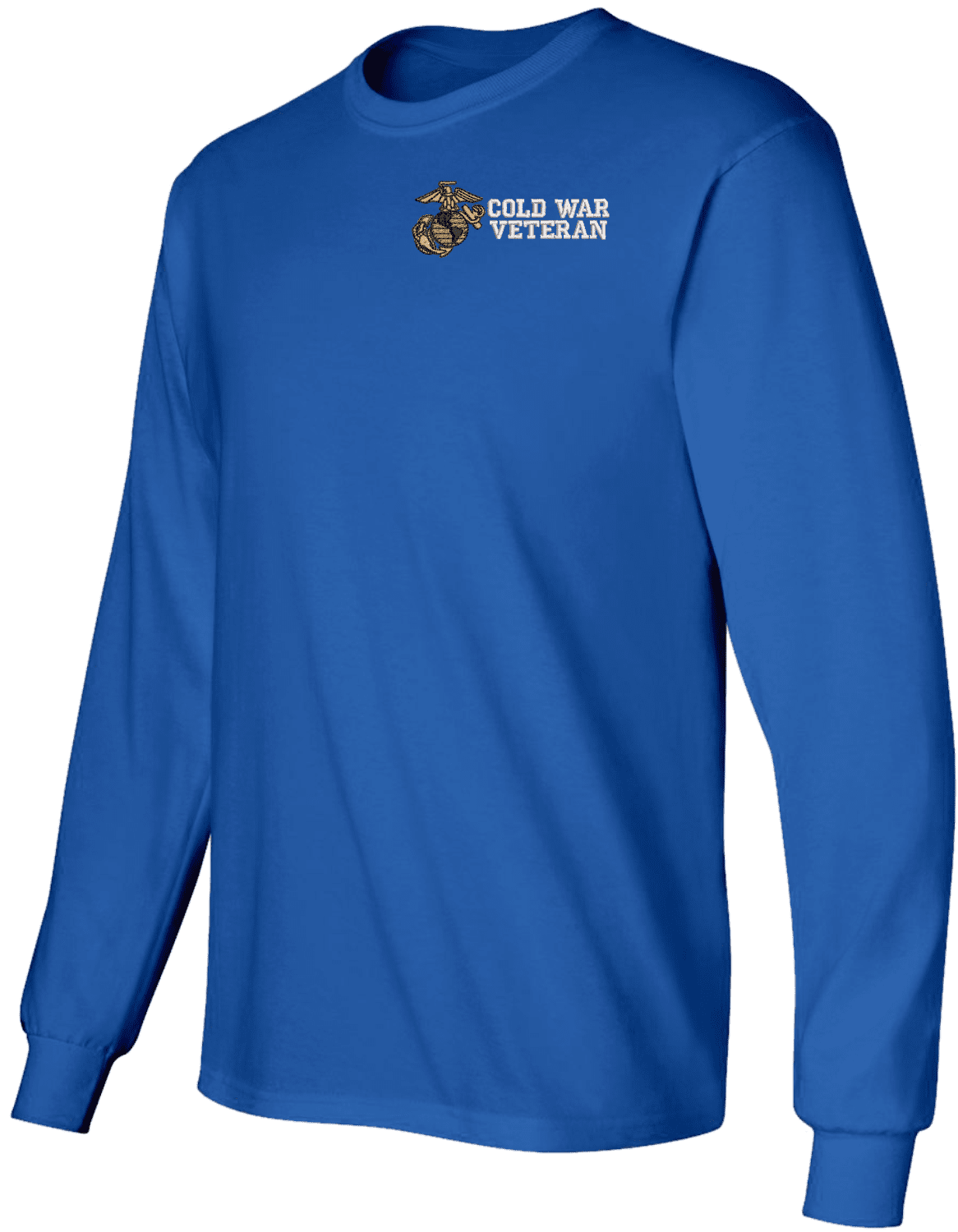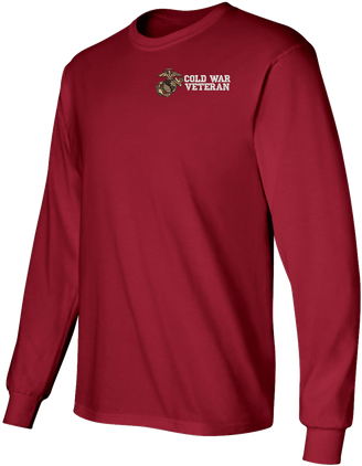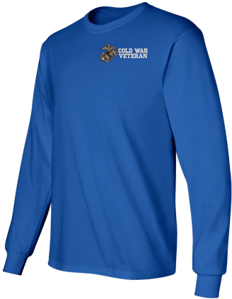 Note: Some of the Color Options pictured may not be available. Available Color Options are listed on the drop down menu above.MilitaryBest has expanded its line of apparel with this custom embroidered U.S. Marine Corps Cold War Veteran Embroidered Long Sleeve T-Shirt. This Gildan brand long sleeve t-shirt is made using a 6 oz pre-shrunk 100% cotton material. This U.S. Marine Corps Cold War Veteran Embroidered Long Sleeve T-Shirt will make an excellent addition to your wardrobe or a quality gift. This U.S. Marine Corps Cold War Veteran Embroidered Long Sleeve T-Shirt is custom embroidered at our facilities in Scottsboro, Alabama.