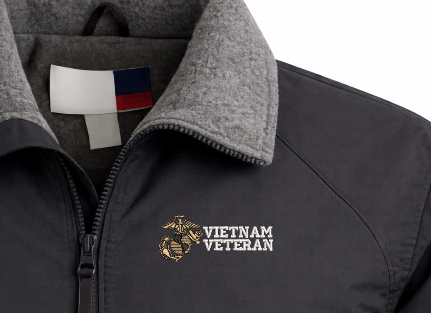 Note: Some of the Color Options pictured may not be available. Available Color Options are listed on the drop down menu above.MilitaryBest is proud to offer this quality U.S. Marine Corps Vietnam Veteran 3 Season Jacket. This U.S. Marine Corps Vietnam Veteran 3 Season Jacket is made from a 3-Layer system consisting of a nylon shell, an insulator layer, Nylon-lined sleeves, and an inside layer of fleece for comfort. The jacket features include a sturdy black enamel front-zipper, raglan sleeves, outsize zip pockets, an inside zip security pocket, YKK zippers, and a banded-bottom. This U.S. Marine Corps Vietnam Veteran 3 Season Jacket will make an excellent addition to your wardrobe, or a quality gift. Your satisfaction is guaranteed! Depending on your location this jacket can be worn in fall, winter, and spring. This jacket is custom embroidered at our facilities in Scottsboro, AL.