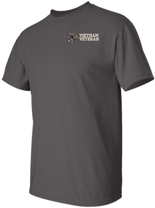 Note: Some of the Color Options pictured may not be available. Available Color Options are listed on the drop down menu above.MilitaryBest is expanding its line of apparel with this fine U.S. Marine Corps Vietnam Veteran Embroidered T-Shirt. This Gildan brand short sleeve t-shirt is made using a 6 oz pre-shrunk 100% cotton material. This U.S. Marine Corps Vietnam Veteran Embroidered T-Shirt will make an excellent addition to your wardrobe or a fine gift. This U.S. Marine Corps Vietnam Veteran Embroidered T-Shirt is custom embroidered at our facilities in Scottsboro, AL when you place your order.