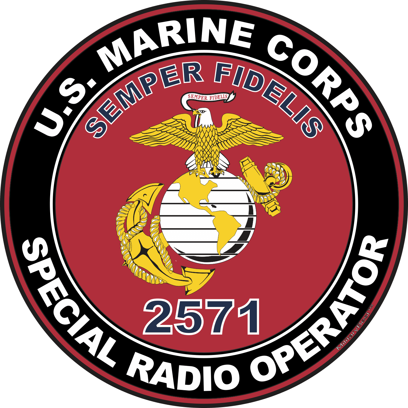MilitaryBest is proud to offer this U.S.M.C. MOS 2571 Special Radio Operator Decal. This U.S. Marine Corps MOS Decal is a great way to show your Marine Pride. All MilitaryBest Marine Corps stickers are printed using high-quality vinyl and U.V. resistant ink. Each is then cured, laminated and die cut for a beautiful crisp, clean and professional look. This U.S.M.C. MOS 2571 Special Radio Operator Decal, as well as, any other MilitaryBest.com decal is proudly Made in the USA at our facilities in Scottsboro, AL. Select desired quantity and size from the menu above.Features: