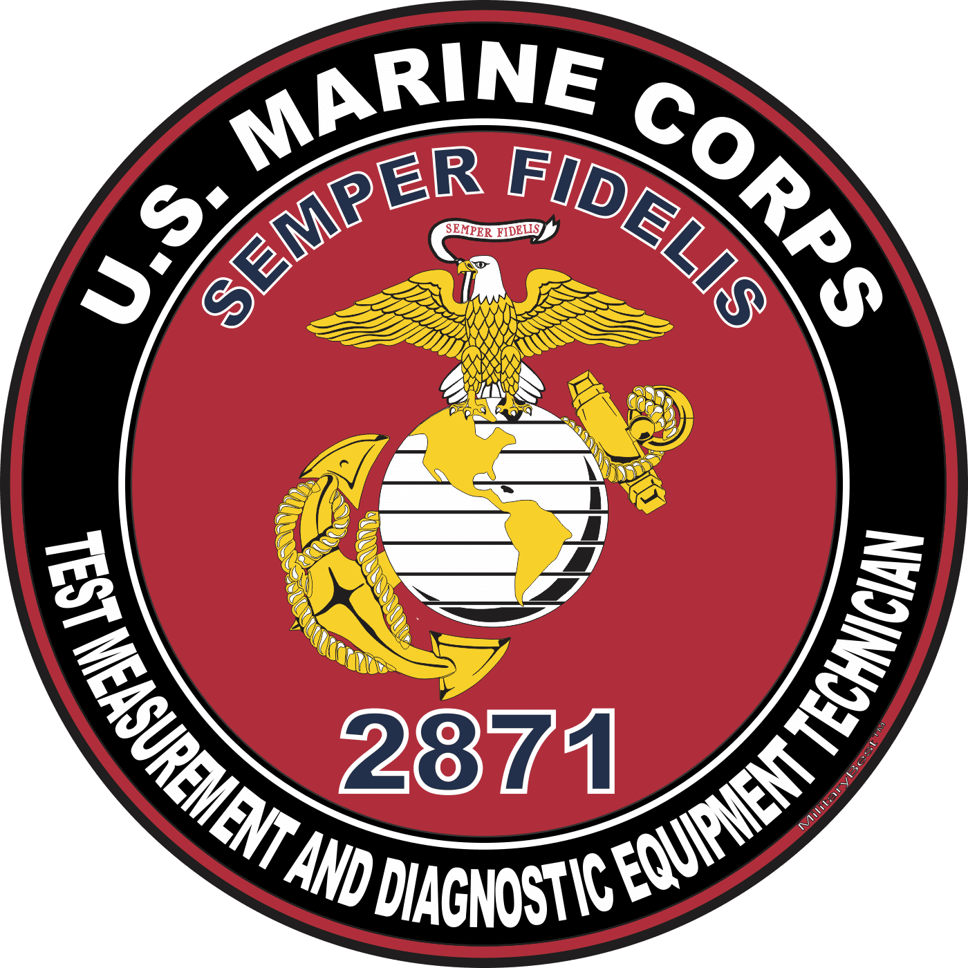 MilitaryBest is proud to offer this U.S.M.C. MOS 2871 Test Measurement and Diagnostic Equipment Technician Decal. This U.S. Marine Corps MOS Decal is a great way to show your Marine Pride. All MilitaryBest Marine Corps stickers are printed using high-quality vinyl and U.V. resistant ink. Each is then cured, laminated and die cut for a beautiful crisp, clean and professional look. This U.S.M.C. MOS 2871 Test Measurement and Diagnostic Equipment Technician Decal, as well as, any other MilitaryBest.com decal is proudly Made in the USA at our facilities in Scottsboro, AL. Select desired quantity and size from the menu above.Features: