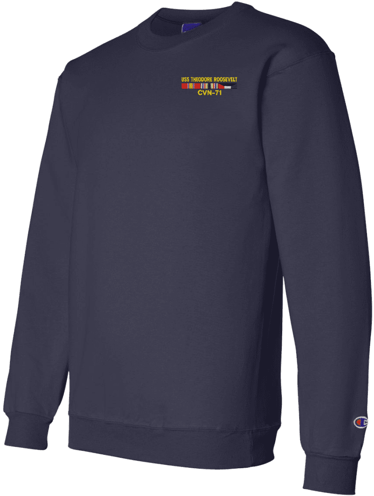 MilitaryBest has expanded its line of apparel with this custom embroidered USS Theodore Roosevelt CVN-71 with Desert Storm Ribbons (Kuwait) Sweatshirt. This Sweatshirt will make an excellent addition to your wardrobe, or a great gift. Your satisfaction is Guaranteed! This Sweatshirt is custom embroidered at our facilities in Scottsboro, AL.
