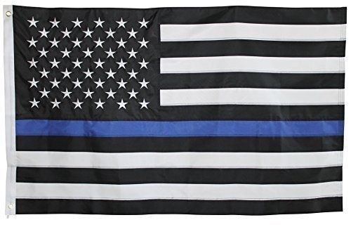 This Thin Blue Line Flag measures 3 feet wide by 5 feet long and features double stitching with sewn stripes and embroidered stars. This gives our flag extra strength and richer color. Each flag is manufactured with tough 210D nylon to handle tough weather and resist tearing and fraying. This Thin Blue Line Flag offers a great way to show your support for law enforcement officers.