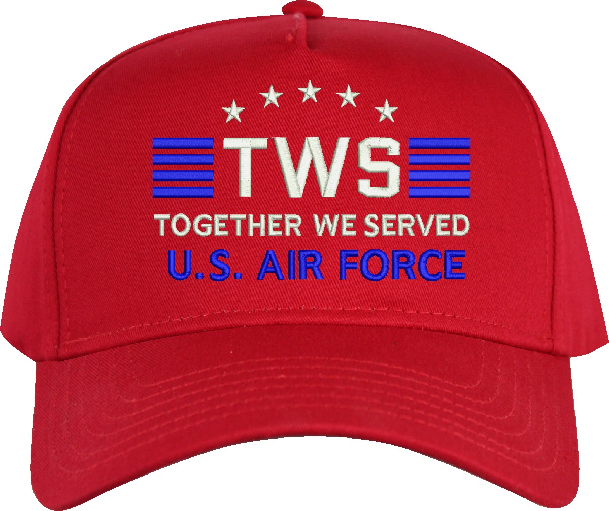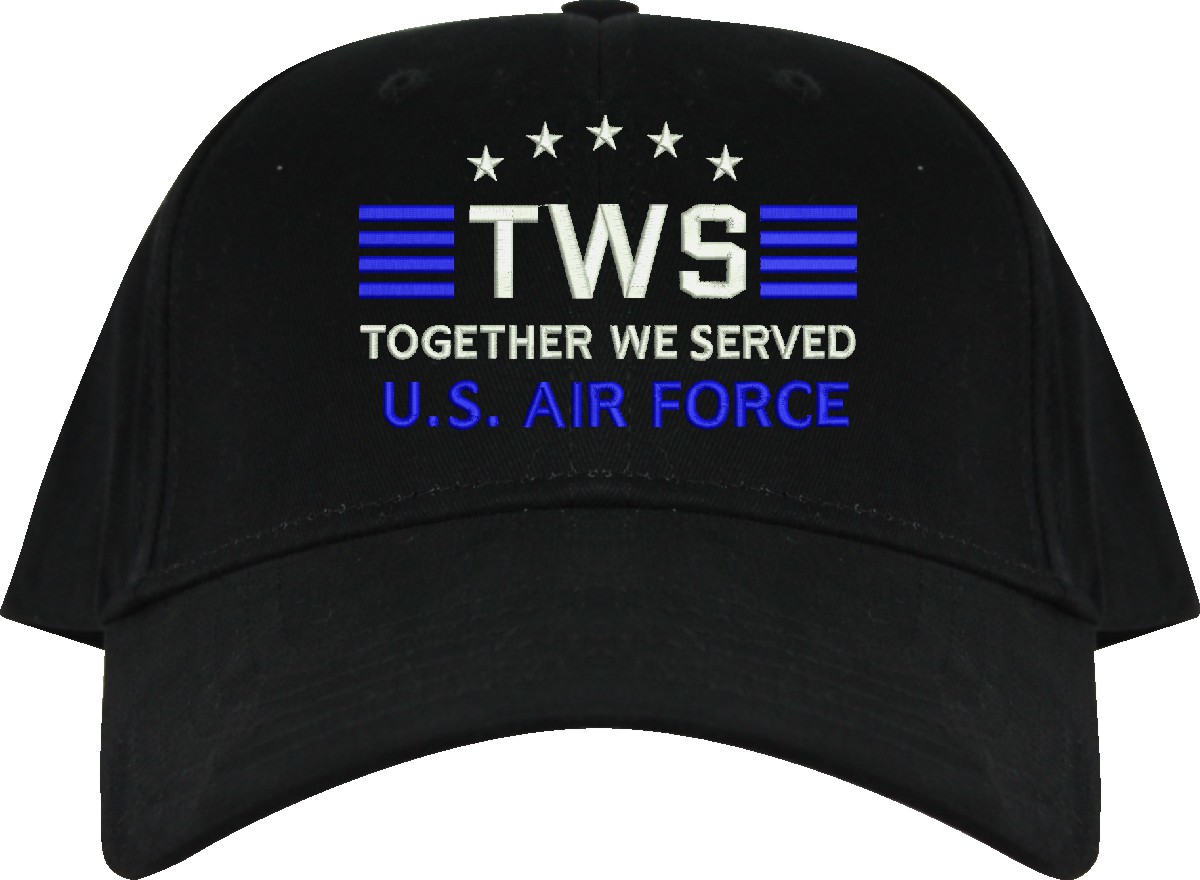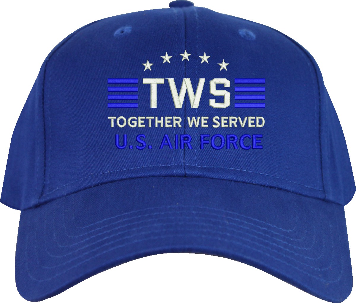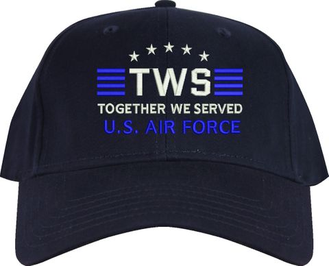 All Text on Custom Orders will be embroidered in ALL CAPITAL LETTERS.MilitaryBest is proud to offer Together We Served U.S. Air Force imported cotton twill caps for our United States military veterans. Each cap is embroidered to order at our facilities in Scottsboro, AL by Americans with a passion for patriotism! You can personalize your cap with embroidered text on the back for an additional $7.