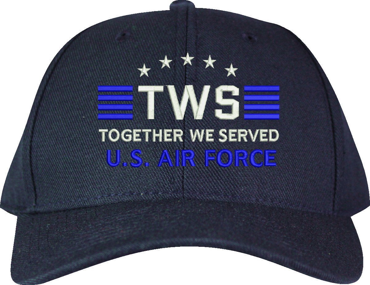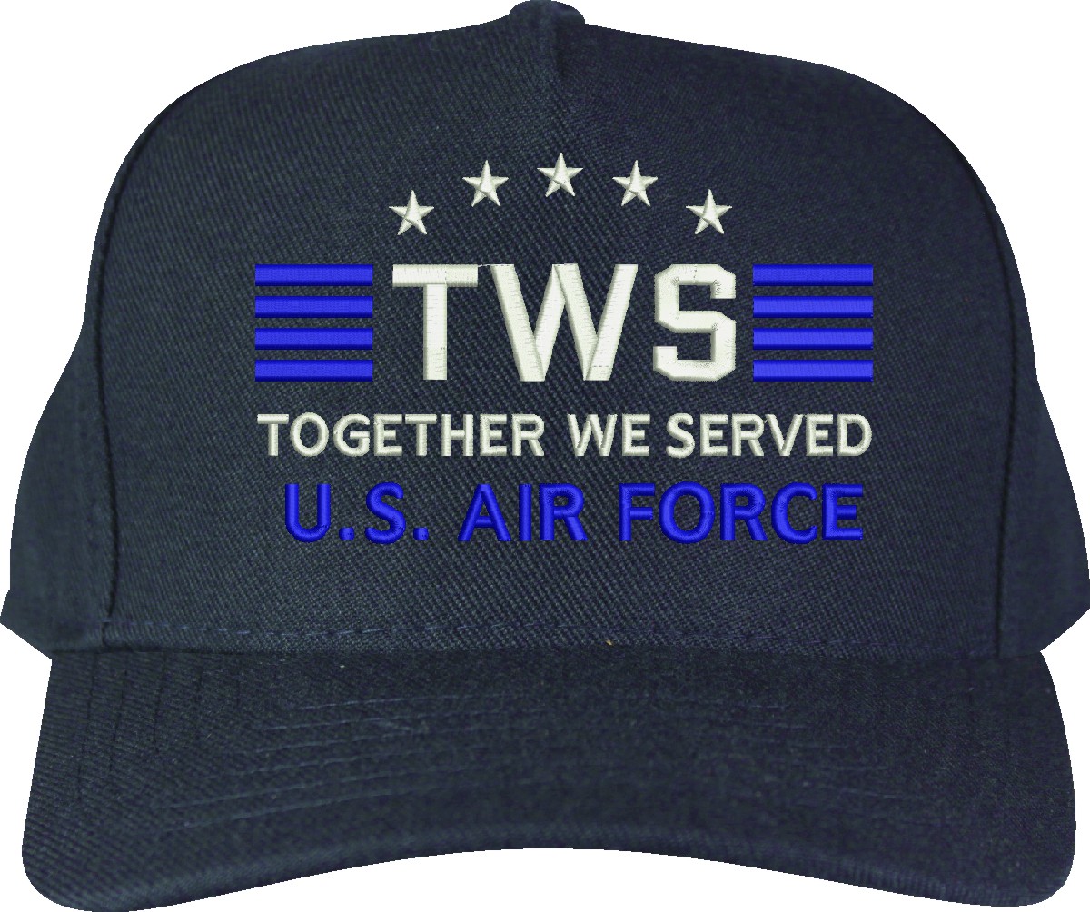 MilitaryBest is proud to offer Together We Served U.S. Air Force Made in the USA caps for our United States military veterans. Each cap is embroidered to order at our facilities in Scottsboro, AL by Americans with a passion for patriotism! You can personalize your cap with embroidered text on the back for an additional $7.