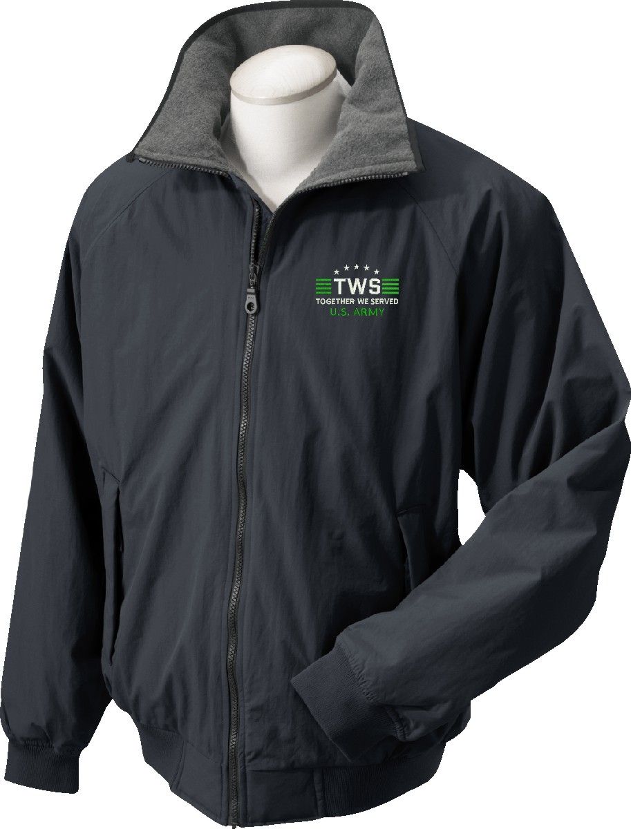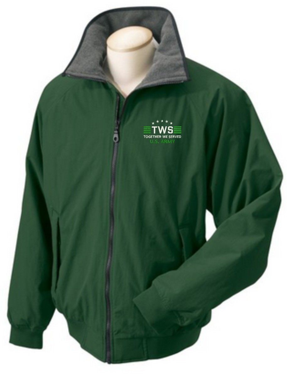 Note: Some of the Color Options pictured may not be available. Available Color Options are listed on the drop down menu above.All Text on custom orders will be embroidered in ALL CAPITAL LETTERS.MilitaryBest is expanding it's line of Men's and Women's apparel with this quality Custom Embroidered Together We Served U.S. Army Jacket. This jacket is made from a 3-Layer system consisting of a nylon shell, an insulator layer, Nylon-lined sleeves, and an inside layer of fleece for comfort. The jacket features include a sturdy black enamel front-zipper, raglan sleeves, outsize zip pockets, an inside zip security pocket, YKK zippers, and a banded-bottom. This jacket will make an excellent addition to your wardrobe, or a quality gift. Your satisfaction is guaranteed! All embroidery is done at our facilities in Scottsboro, AL.